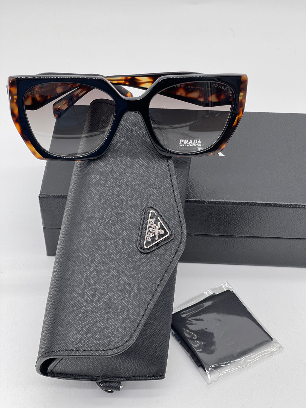 PRELOVED Prada Tortoise shell and black Sunglasses W/ grey Gradient Lens . BP43539350 100224 H