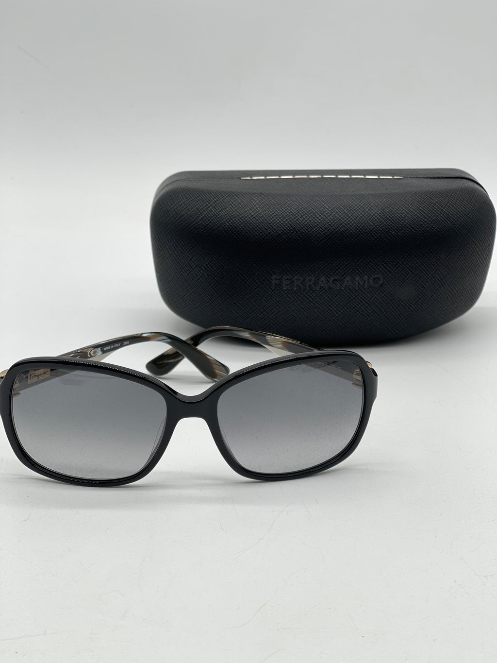 Preloved Salvatore Ferragano Rectangular Black Sunglasses with Grey gradient lenses. SF606S 100424 P