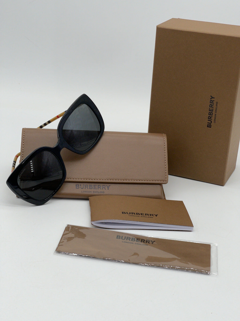 New Burberry Square Black Gradient Sunglasses with checkers on the temple. BV01989057G 092624 H