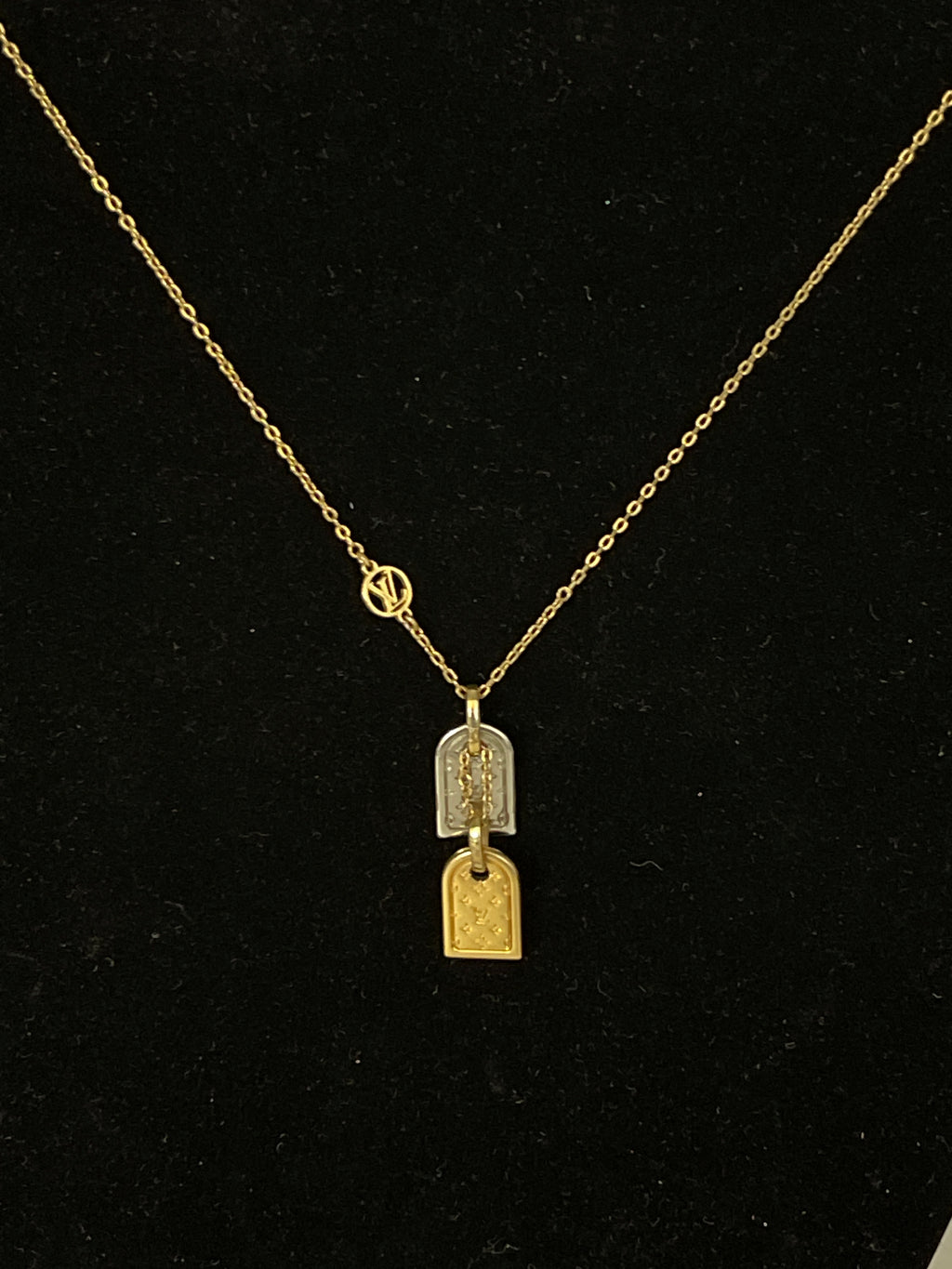 Preloved Louis Vuitton Nanogram Necklace Metal gold and white gold color. LE1109 081224 H