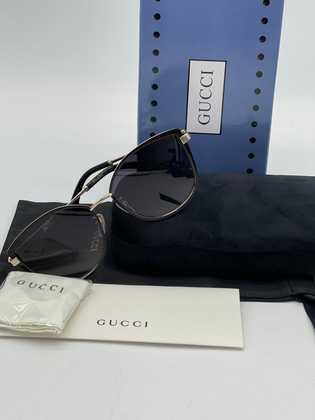 NEW Gucci Sunglasses GG0595S 002 XXL OVERSIZED Gold/Grey Lens. GG0595 093024 H
