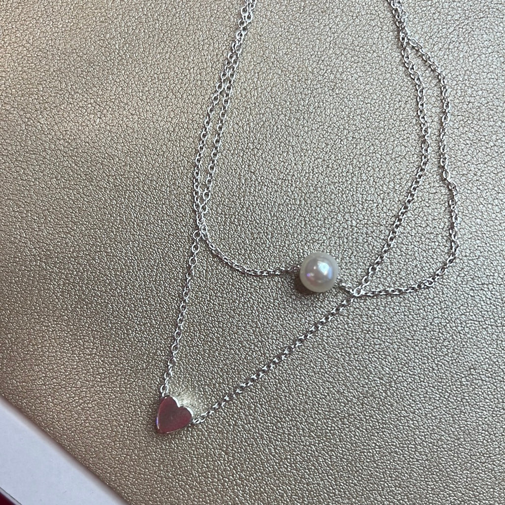 White Gold (SILVER) Pearl & Heart Double Anklet - DEAL OF THE NIGHT - LIVE SHOW 080523