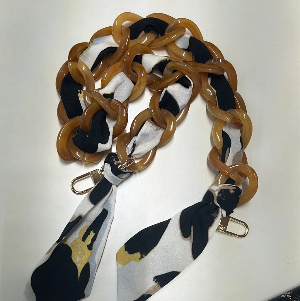 NEW 22" TWILLY SCARF RESIN CHAIN BLACK & WHITE PRINT 060723