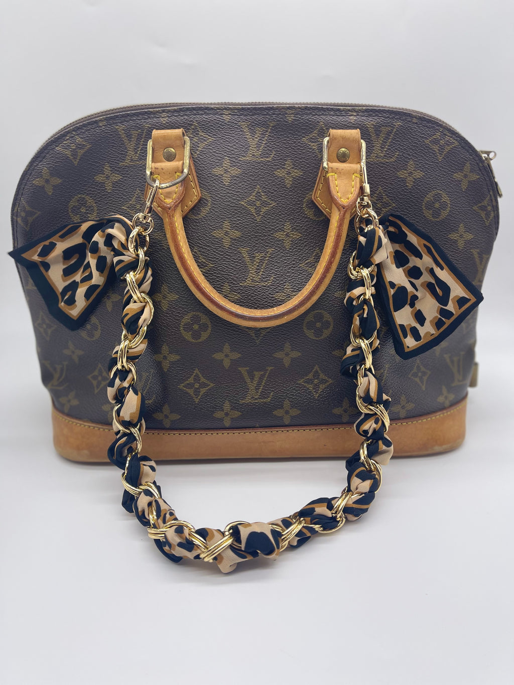 NEW 22" TWILLY SCARF GOLD CHAIN BROWN LEOPARD PRINT 062423