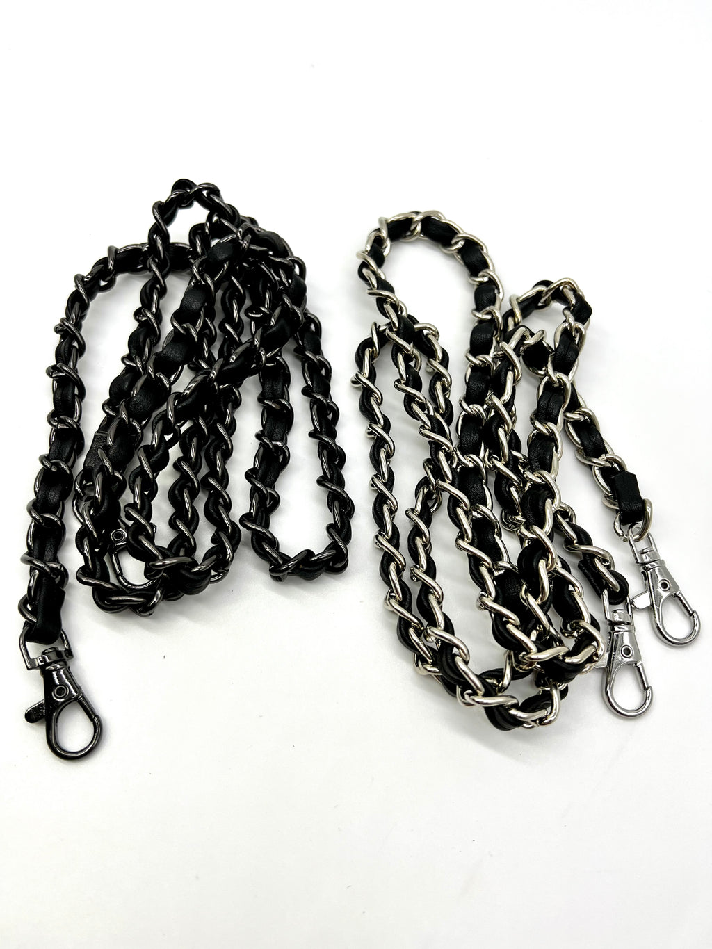 NEW Silver Metal and Leather Purse Chain Straps