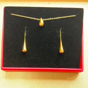 NEW Stainless Steel Chain 18K Gold Plated Small Water Drop Charm Necklace and 1" Drop Earring Set