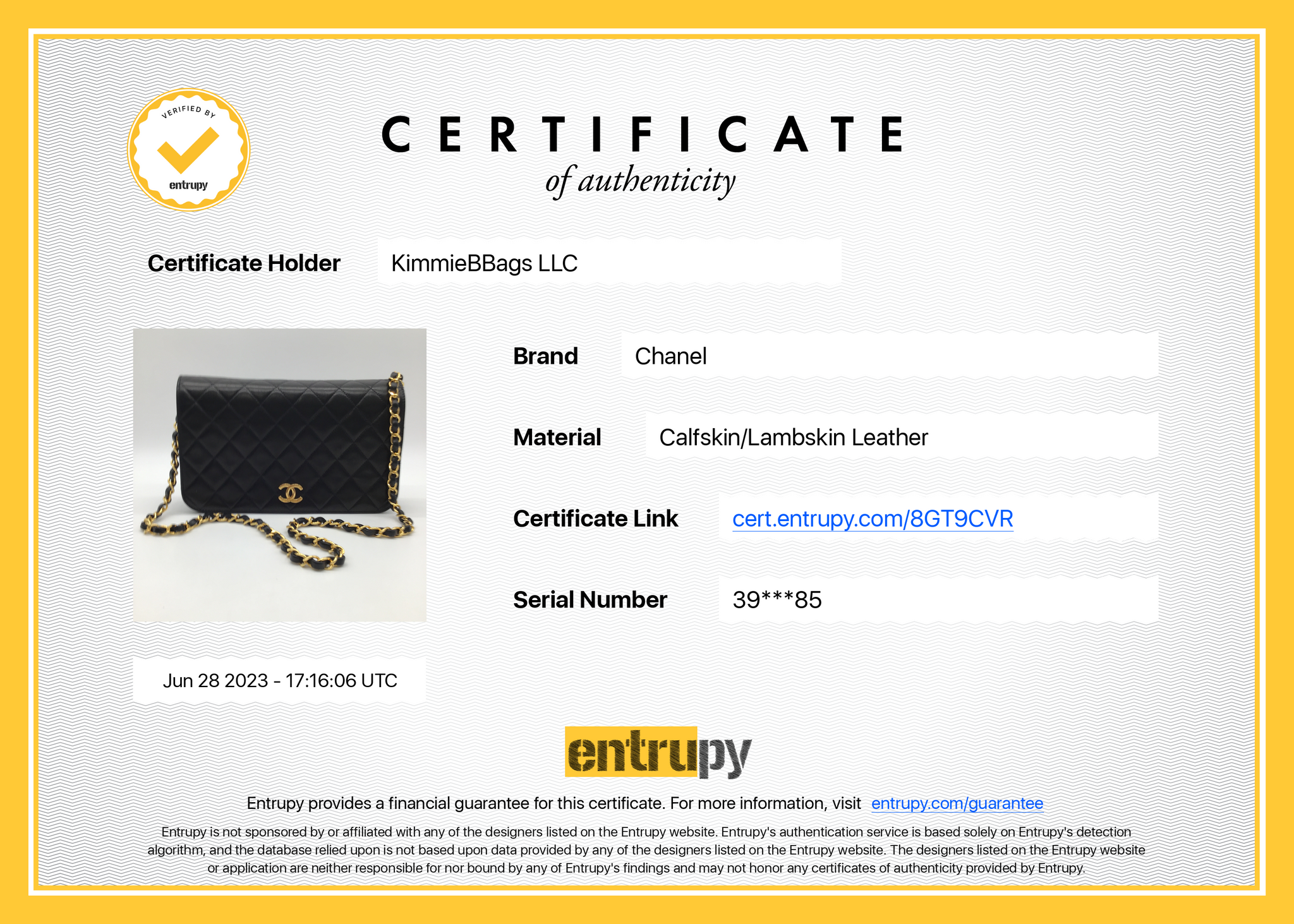 *KimmieBBags LLC is not affiliated with Chanel resold on this site. All bags are on consignment, pre-loved and are in used and/or vintage condition. All bags, wallets, and agendas are guaranteed Authentic by a third party Entrupy. A certificate will accompany each item purchased to verify authenticity.