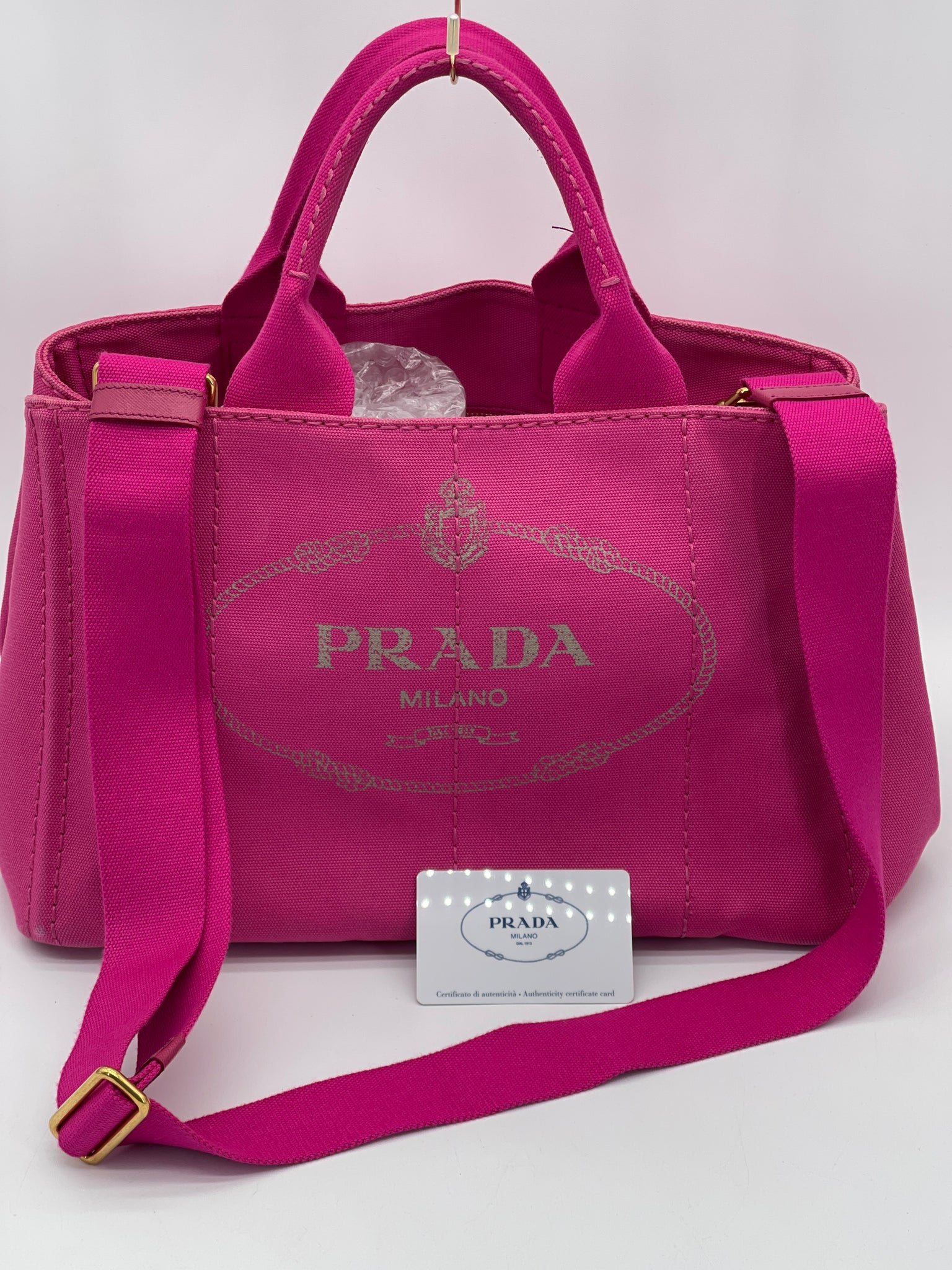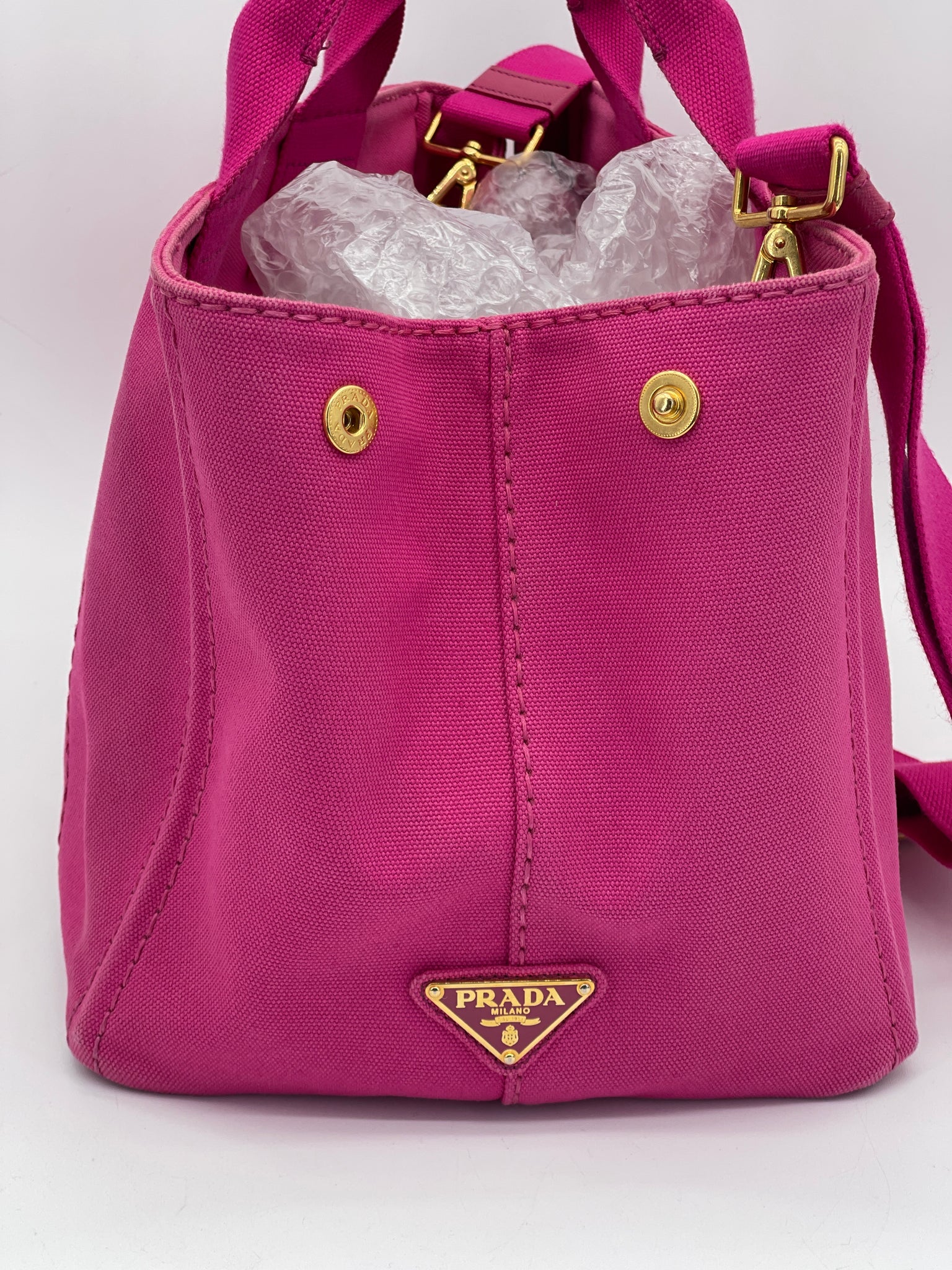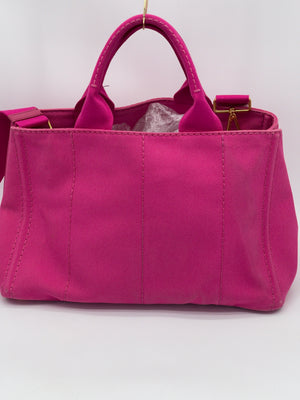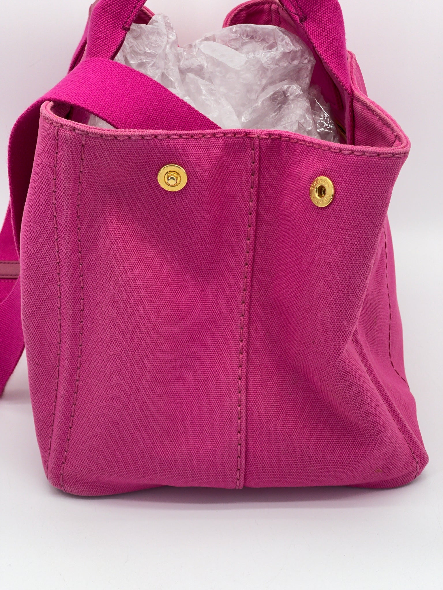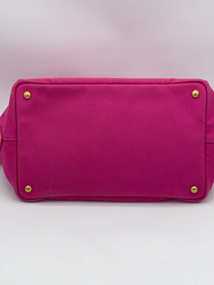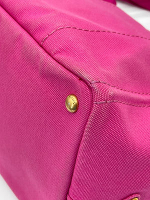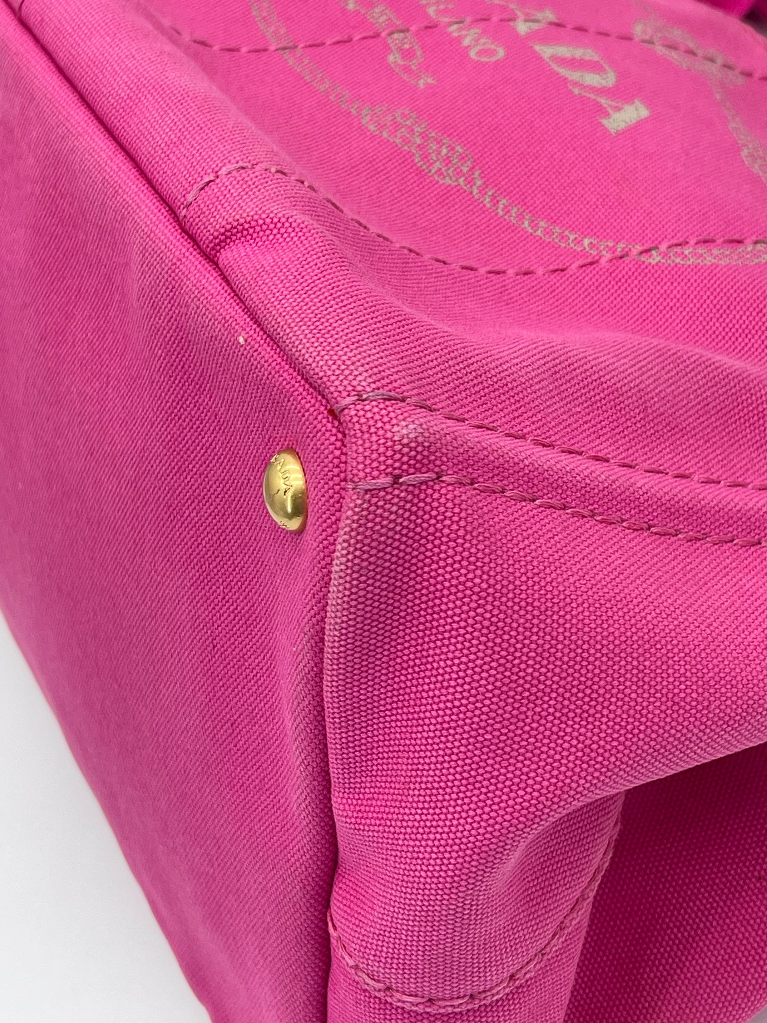 Preloved Prada Medium 2 Way Pink Canvas Canapa Tote - No Strap