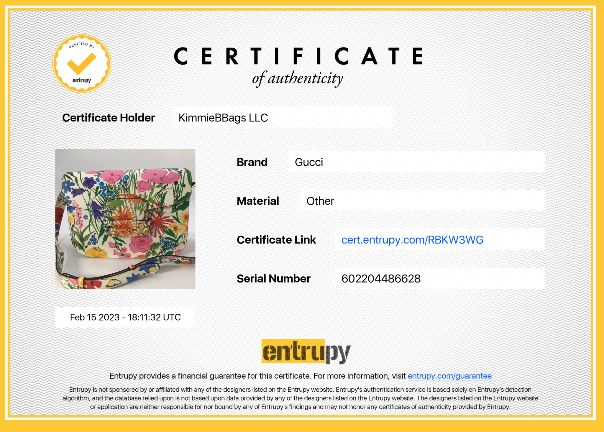 Entrupy letter of Authenticity!
