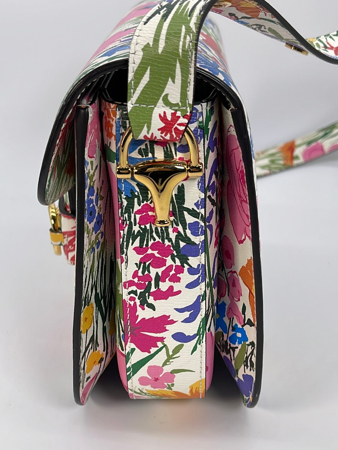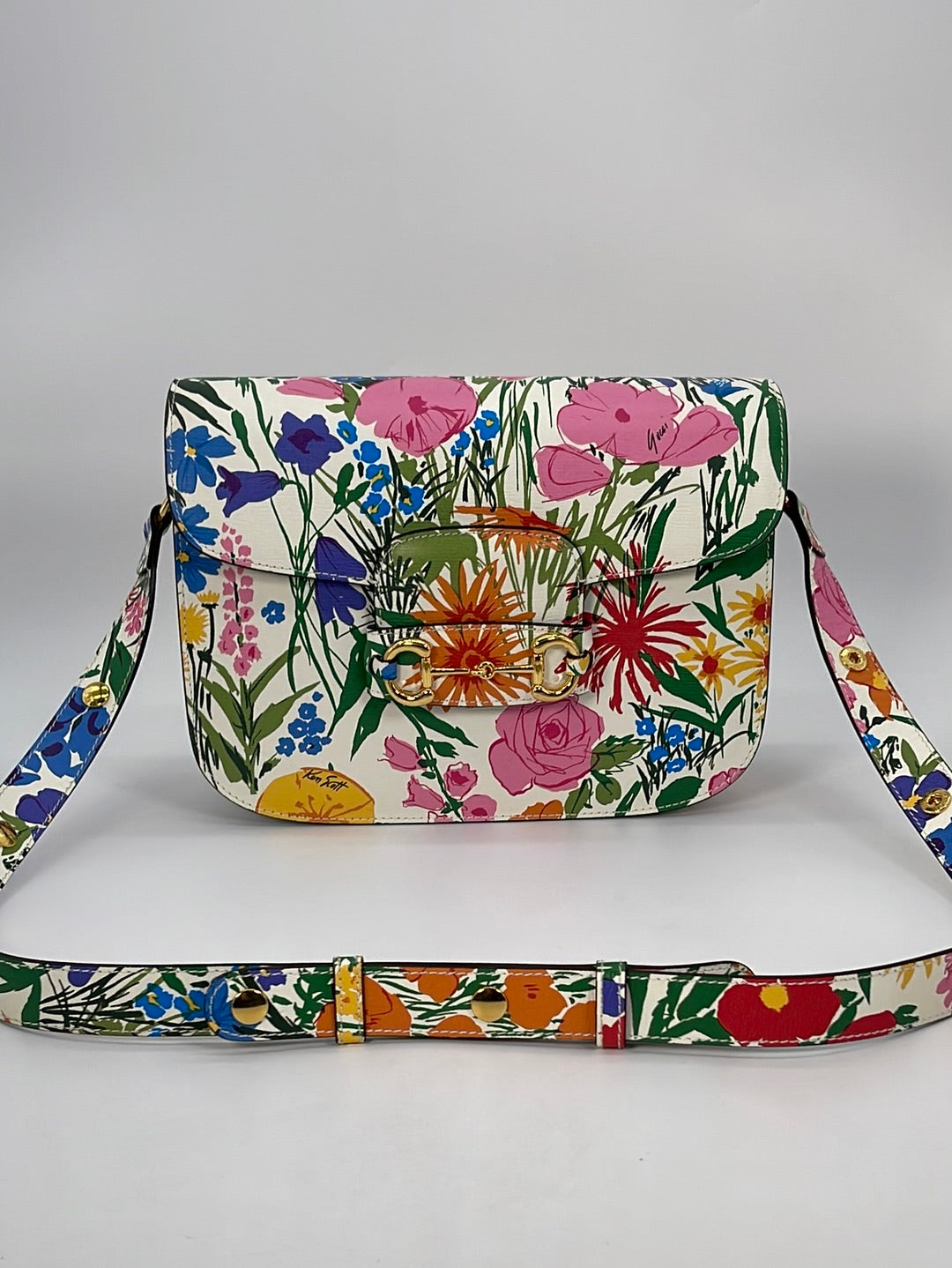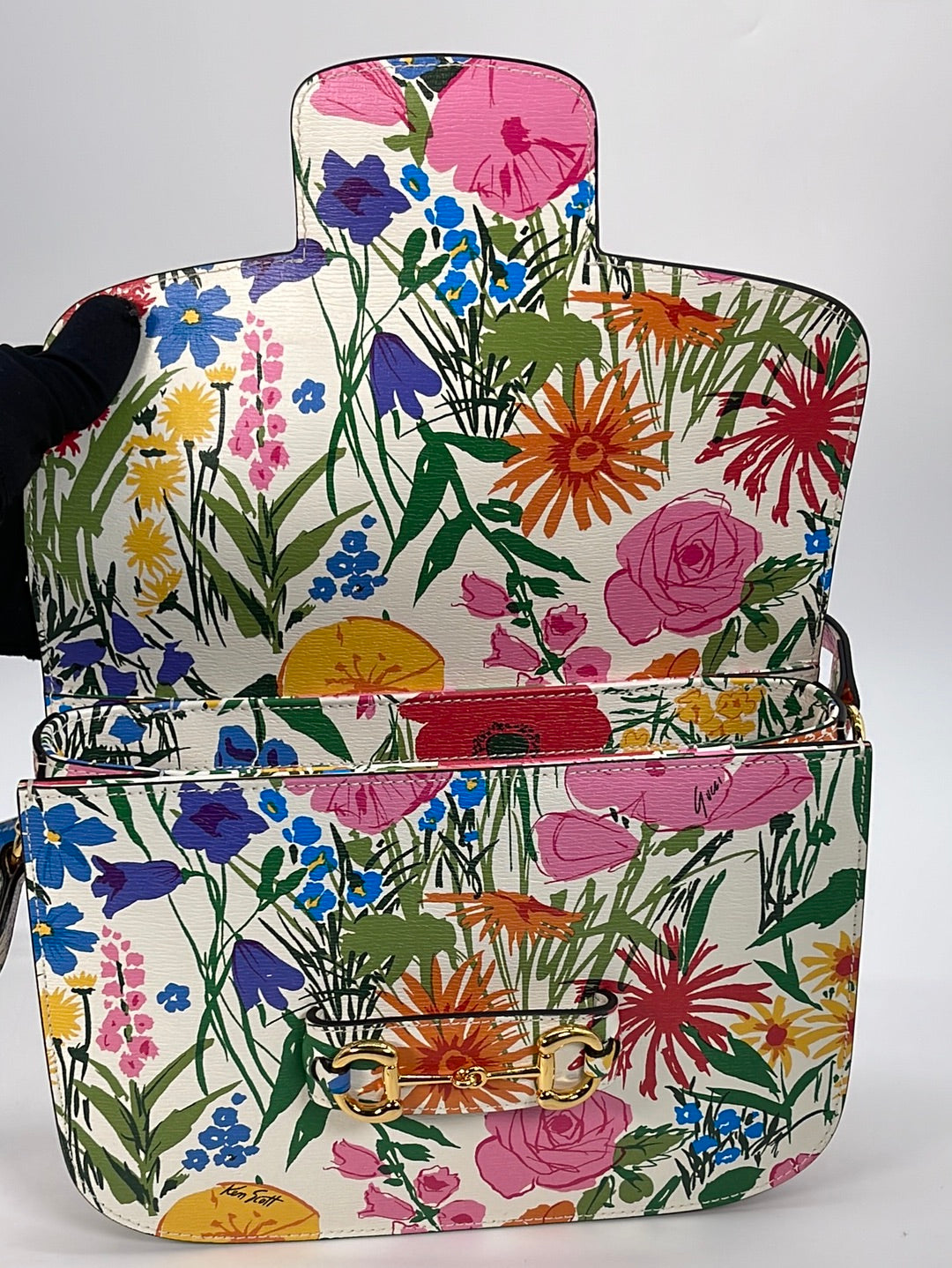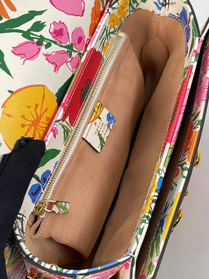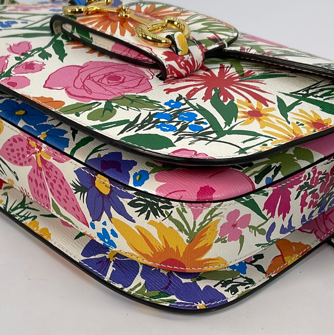 Limited Edition GUCCI Horsebit 1955 Floral Shoulder Bag. Designed by Ken Scott.