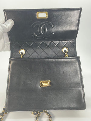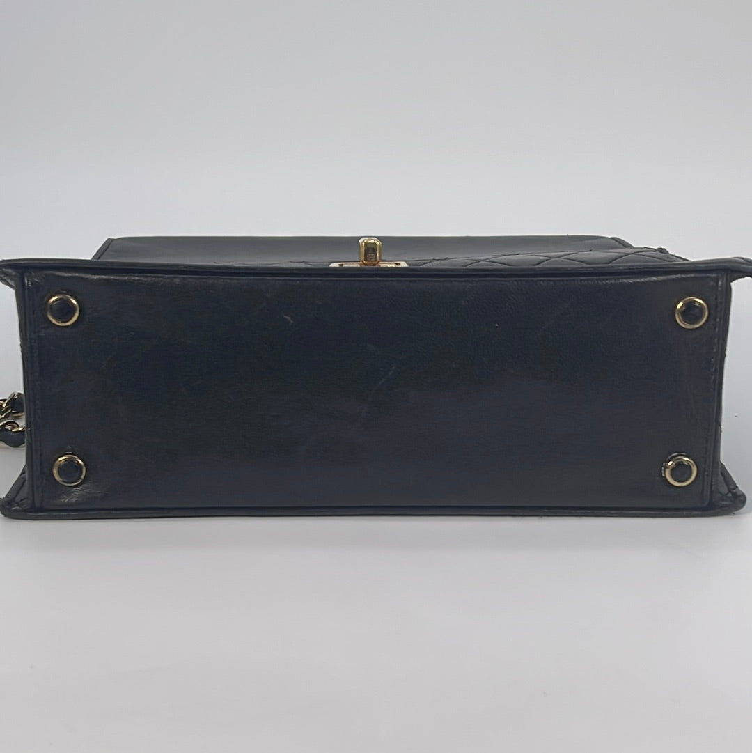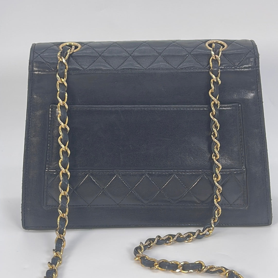 Vintage CHANEL Lambskin Medium Double Flap Matelasse Chain Black Bag