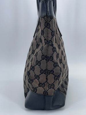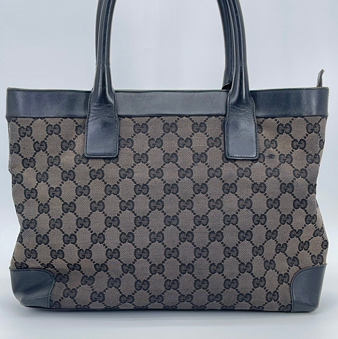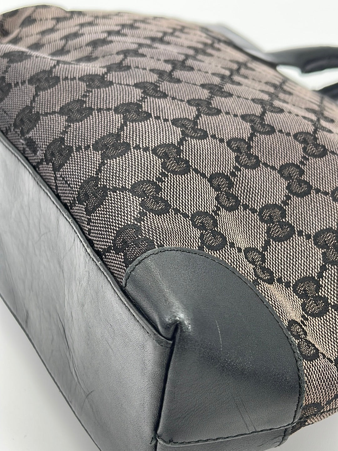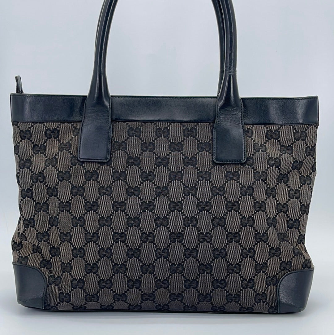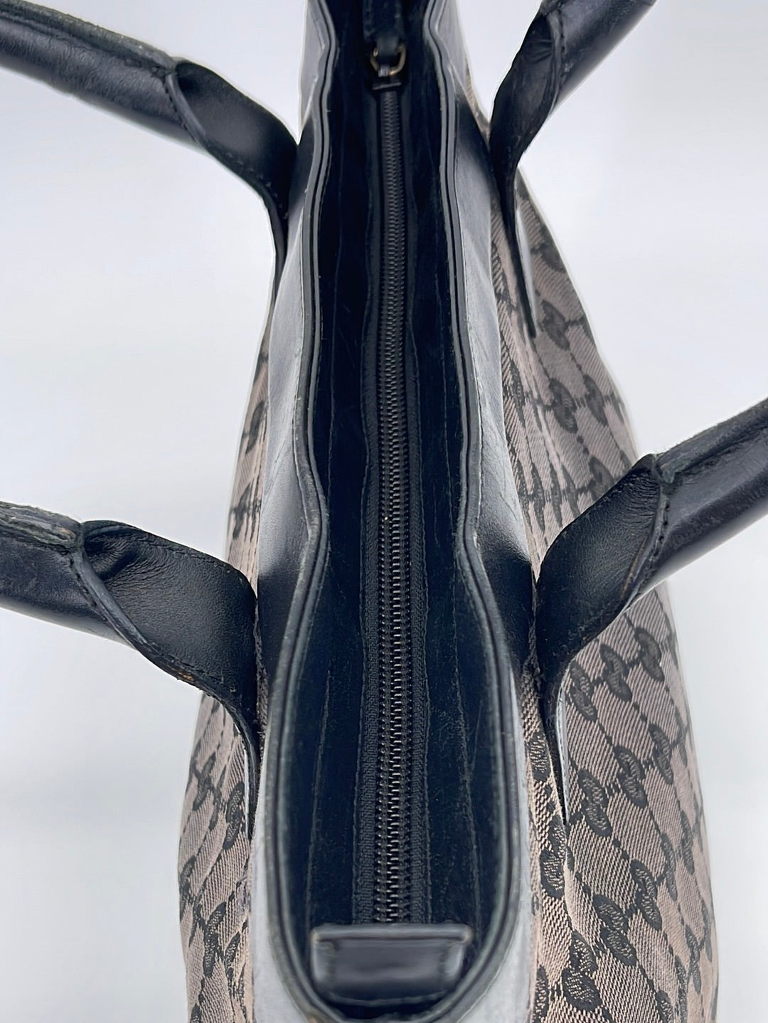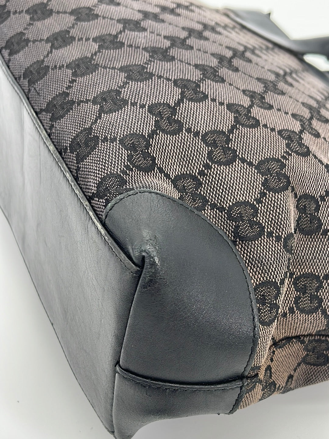 Preloved Gucci Gray GG Canvas and Black Leather Tote