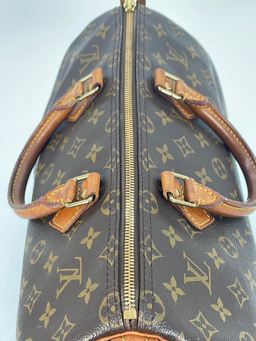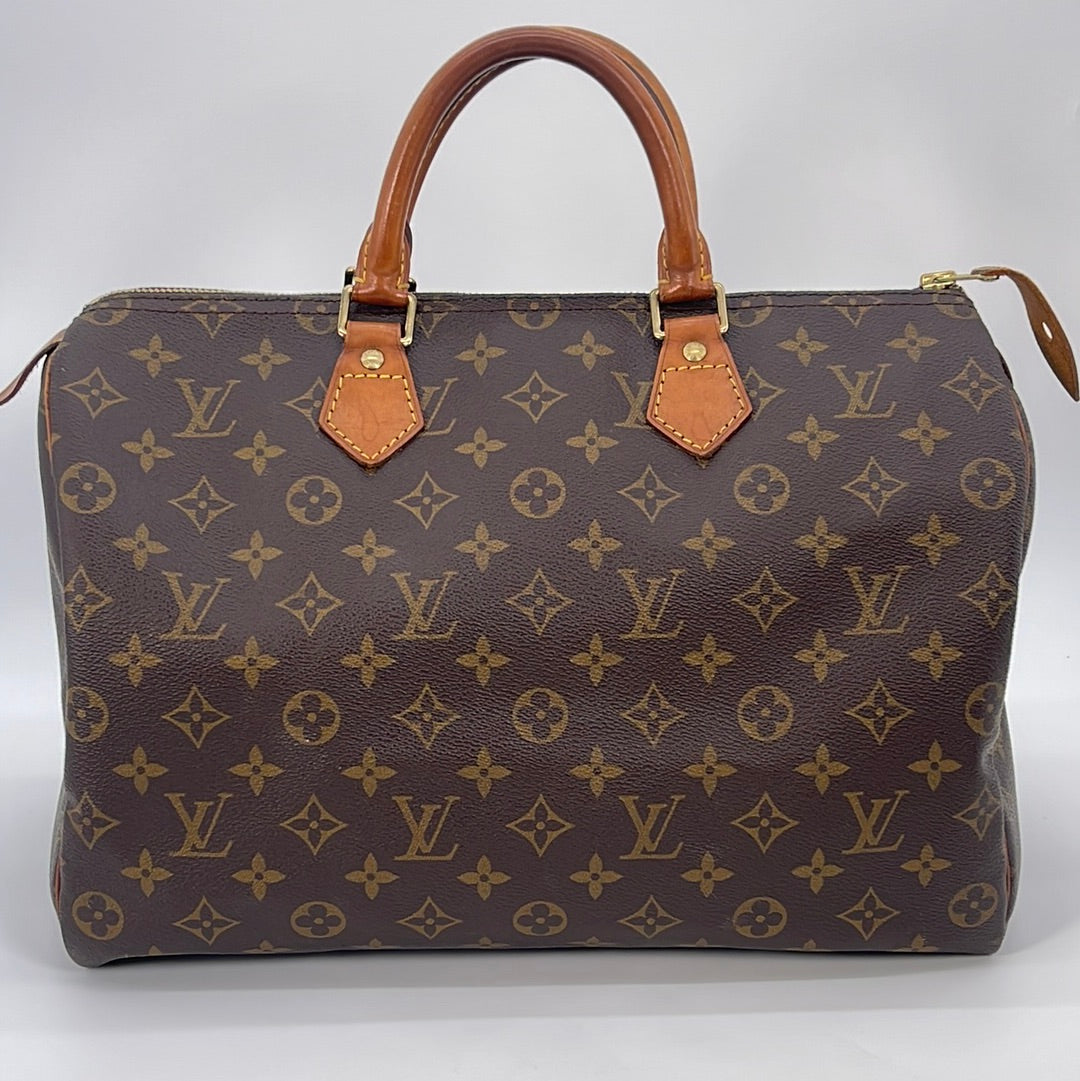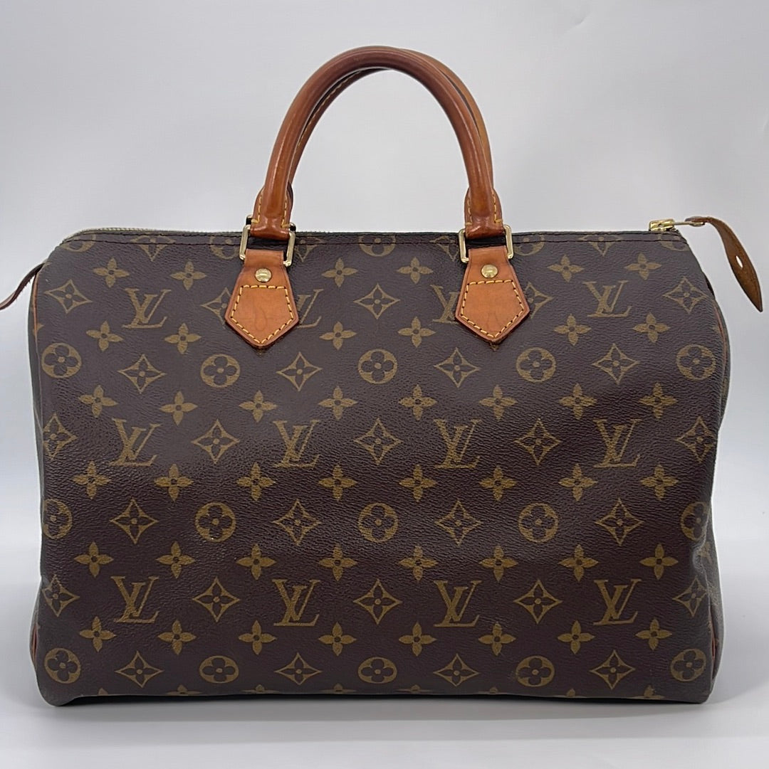 Preloved Louis Vuitton Speedy 35 Monogram Bag! The Louis Vuitton Monogram Canvas Speedy 35 was styled after the iconic keep-all and has been popular ever since!
