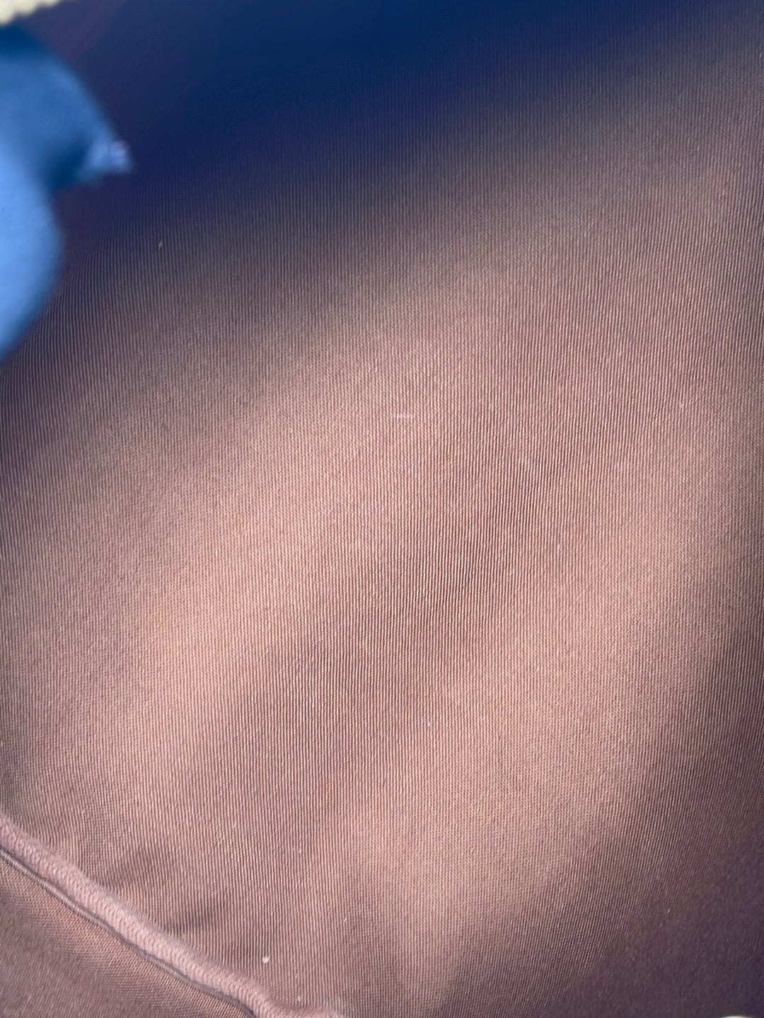 Preloved - Good vintage condition. Exterior canvas is clean. Leather is a dark patina. Spot of rubbing on handle. Piping has light wear. Interior is clean. See photos!