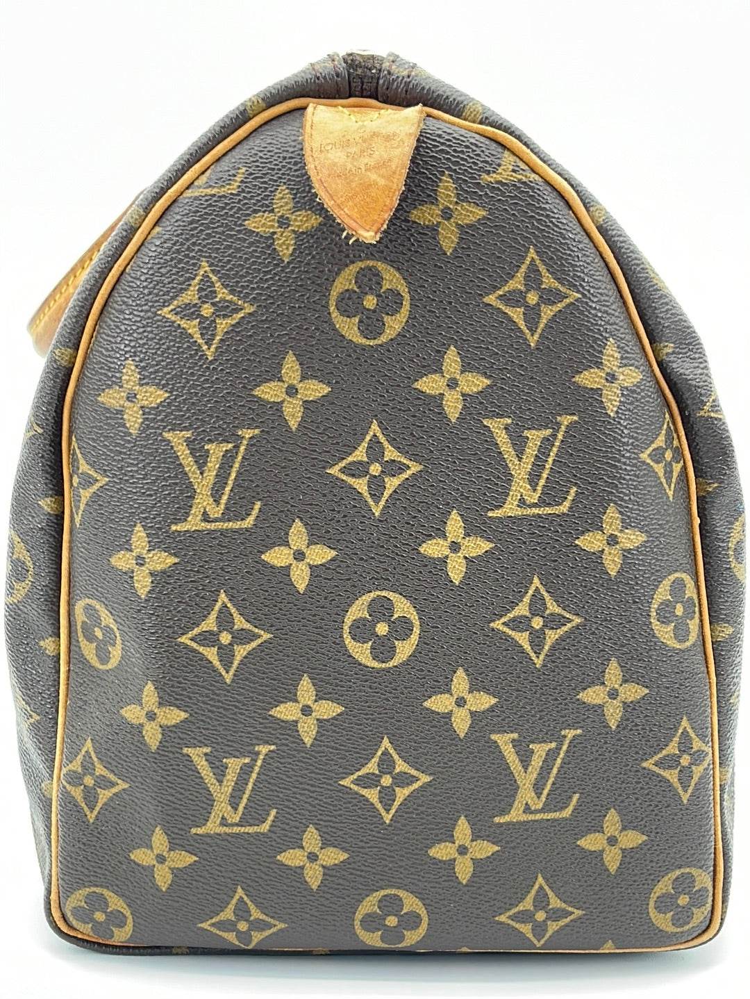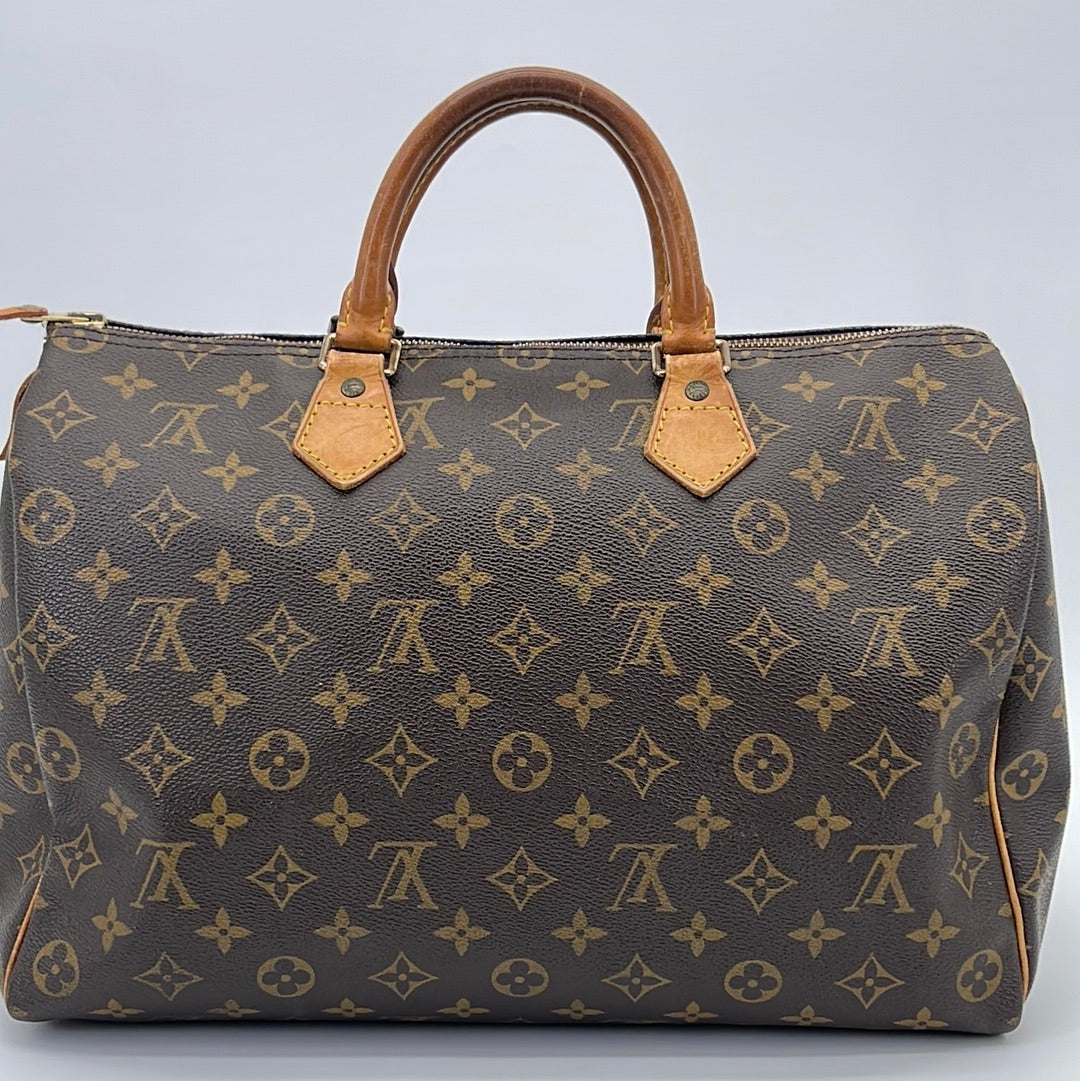 Preloved Louis Vuitton Speedy 35 Monogram Bag! The Louis Vuitton Monogram Canvas Speedy 35 was styled after the iconic keep-all and has been popular ever since!