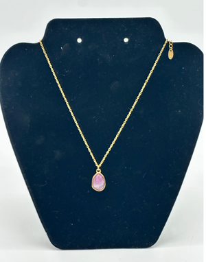 Rose Quartz Natural Stone 18k Gold Plated Stainless Steel Chain Necklace