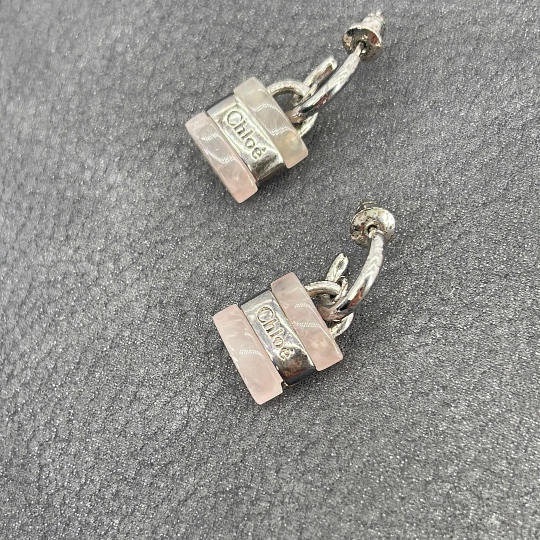Preloved Chloe Colleen Pink Quartz and Silver Lock Earrings