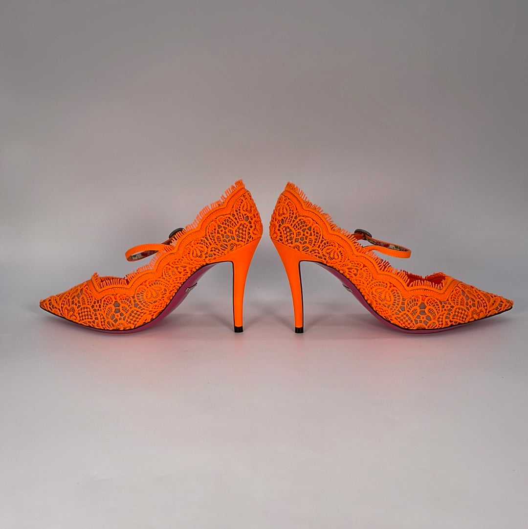 Preloved Gucci Size 37 (7) Orange Virginia 95 Lace Pumps