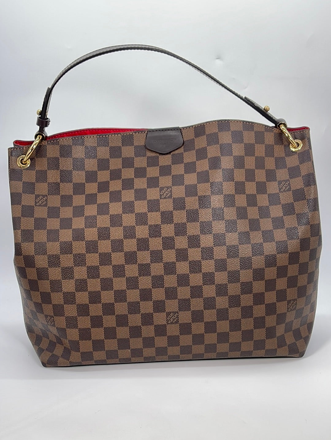 Preloved Louis Vuitton Damier Ebene Gracefull MM Shoulder Bag with Red Interior