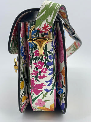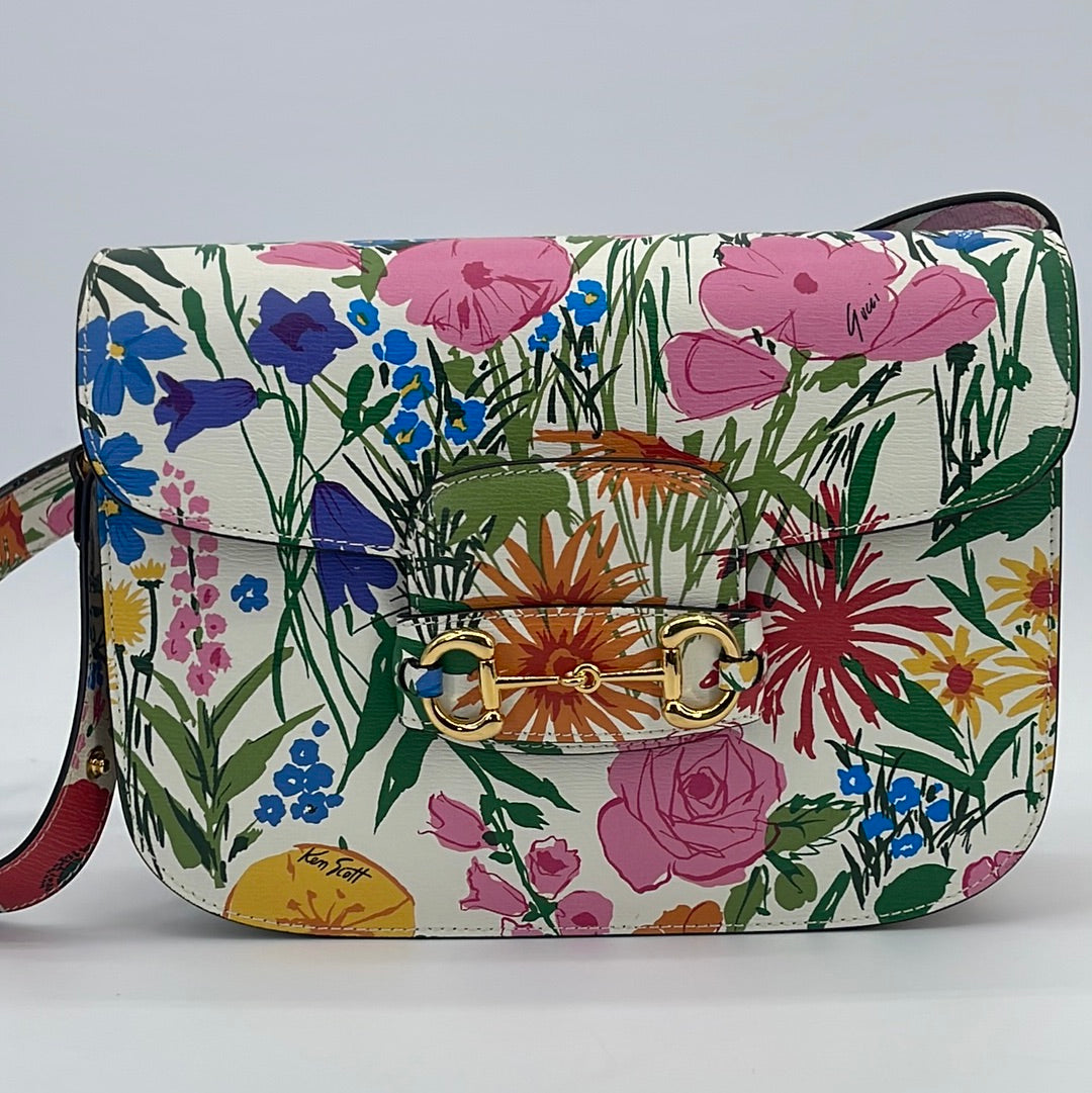 Preloved Limited Edition GUCCI Horsebit 1955 Floral Shoulder Bag. Designed by Ken Scott.