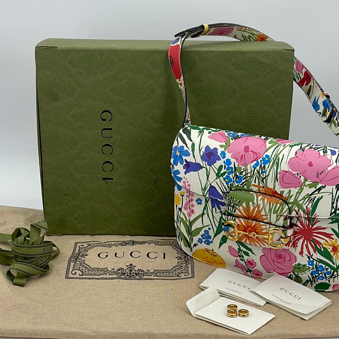 Preloved Limited Edition GUCCI Horsebit 1955 Floral Shoulder Bag 602204486628 051223 $800 OFF LIVES SHOW NO ADDITIONAL DISCOUNTS