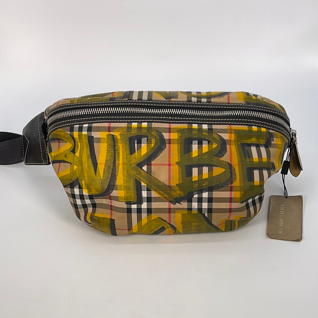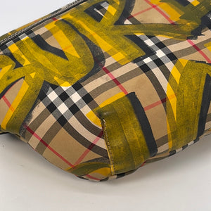 Preloved Burberry Check Canvas and Graffiti Large Bum Bag
