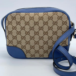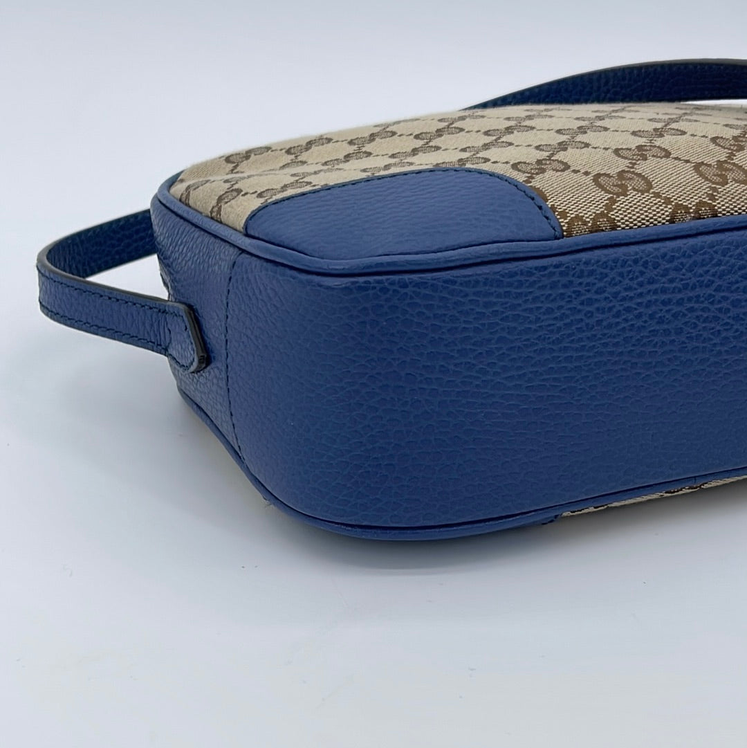 PRELOVED Gucci GG Canvas and Blue Leather Bree Crossbody Bag
