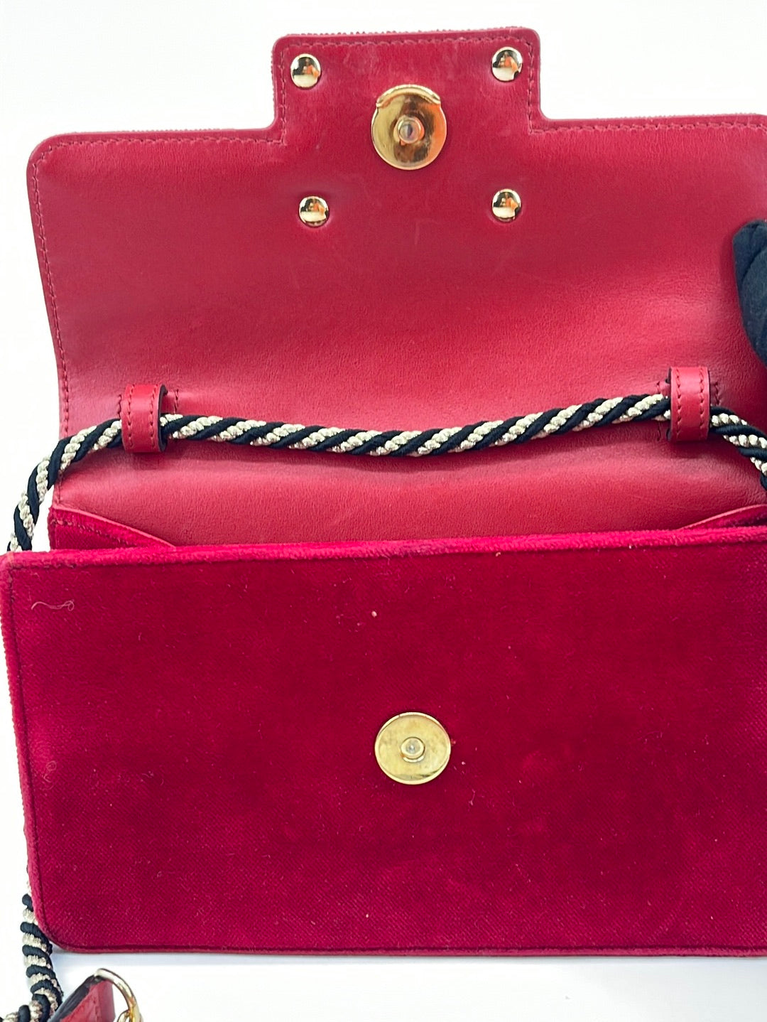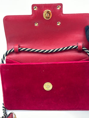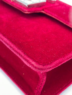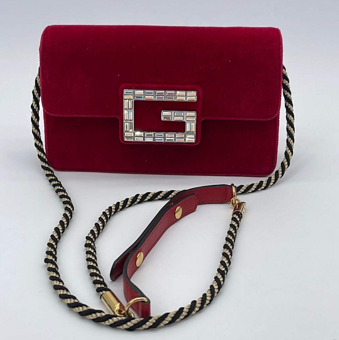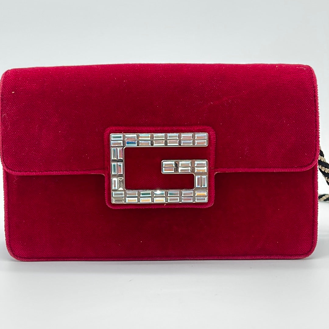 Preloved Gucci Red G Broadway Velvet Jeweled Velvet Crossbody Bag