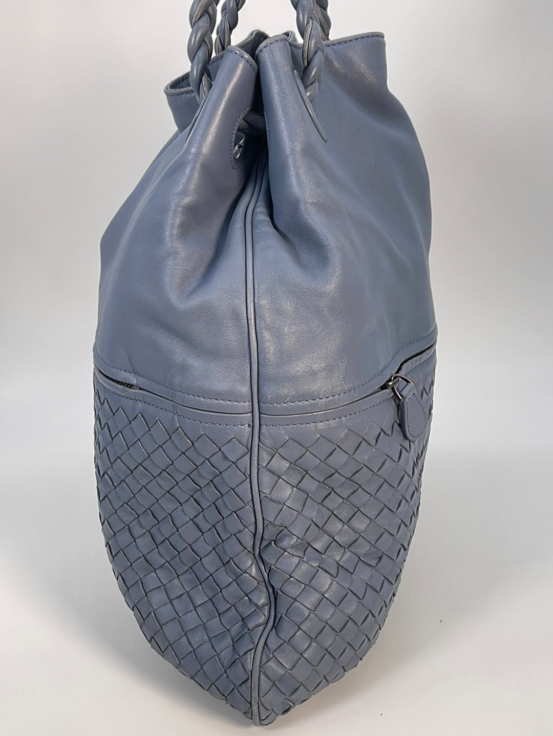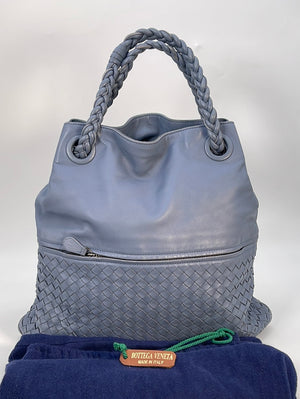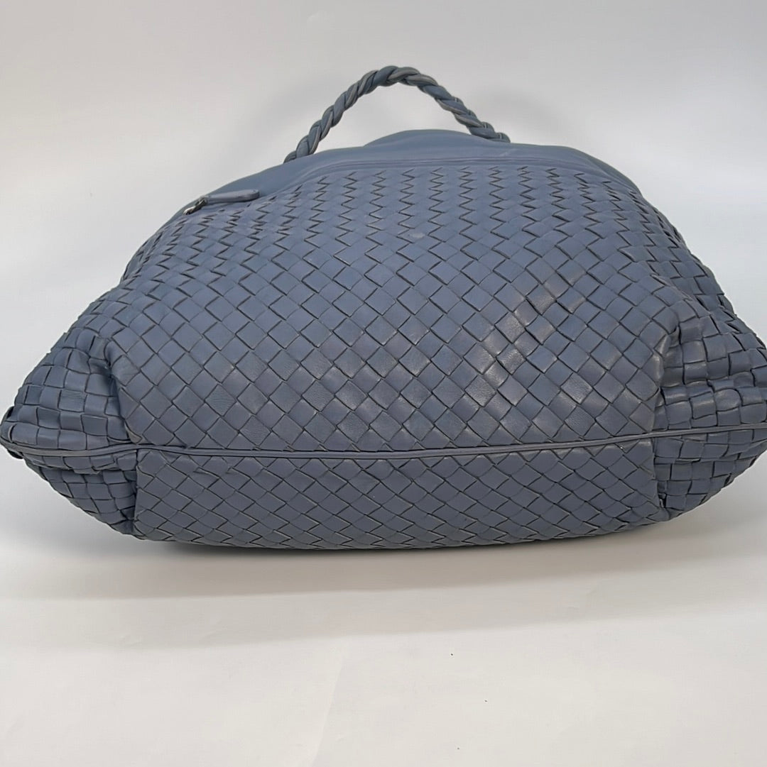 Preloved Bottega Veneta Intrecciato Blue Leather Bucket Hobo Bag