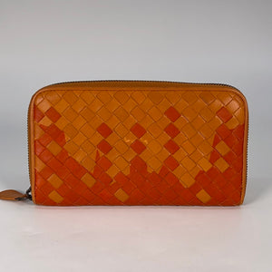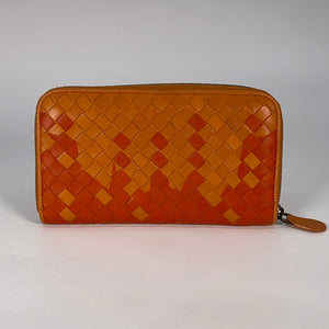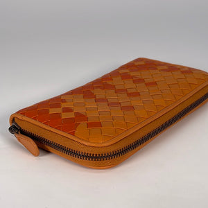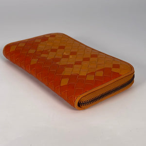 PRELOVED Bottega Veneta Intrecciato Orange Woven Zip Wallet