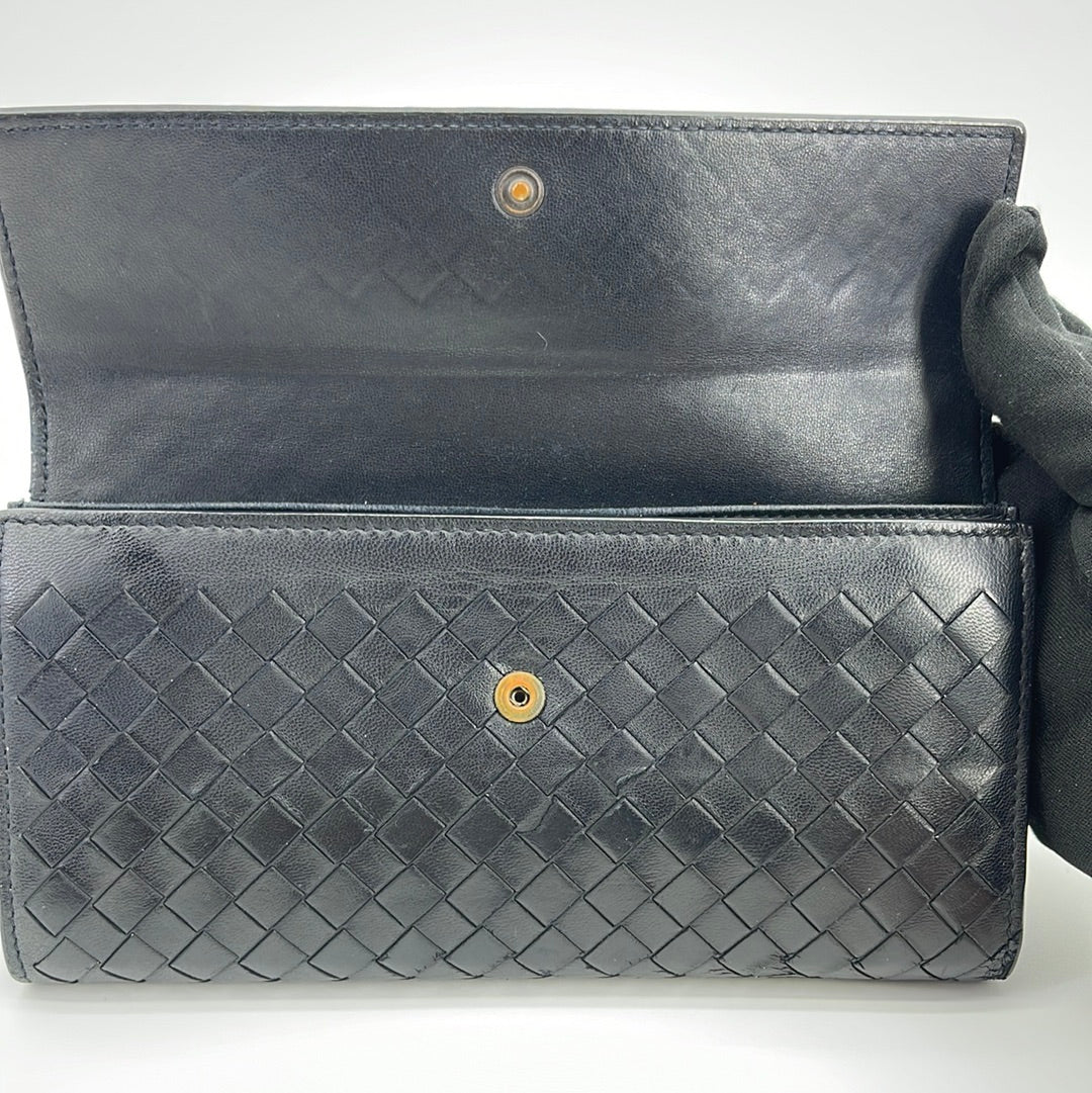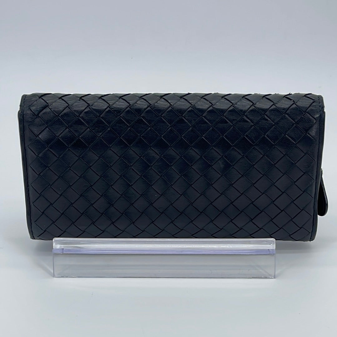 PRELOVED Bottega Veneta Intrecciato Black Woven Leather Wallet