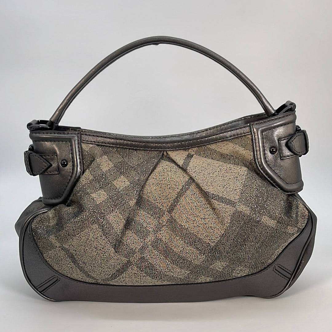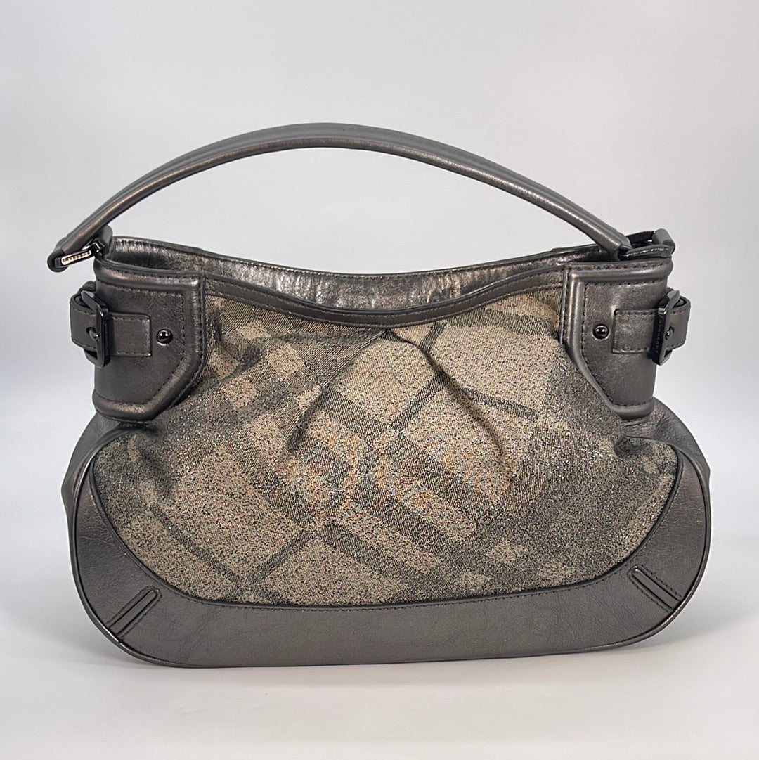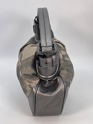 Preloved Burberry Grey Shimmer Canvas Hobo Bag