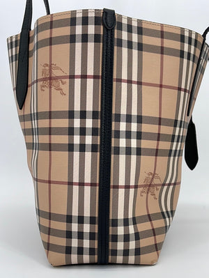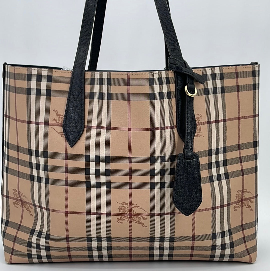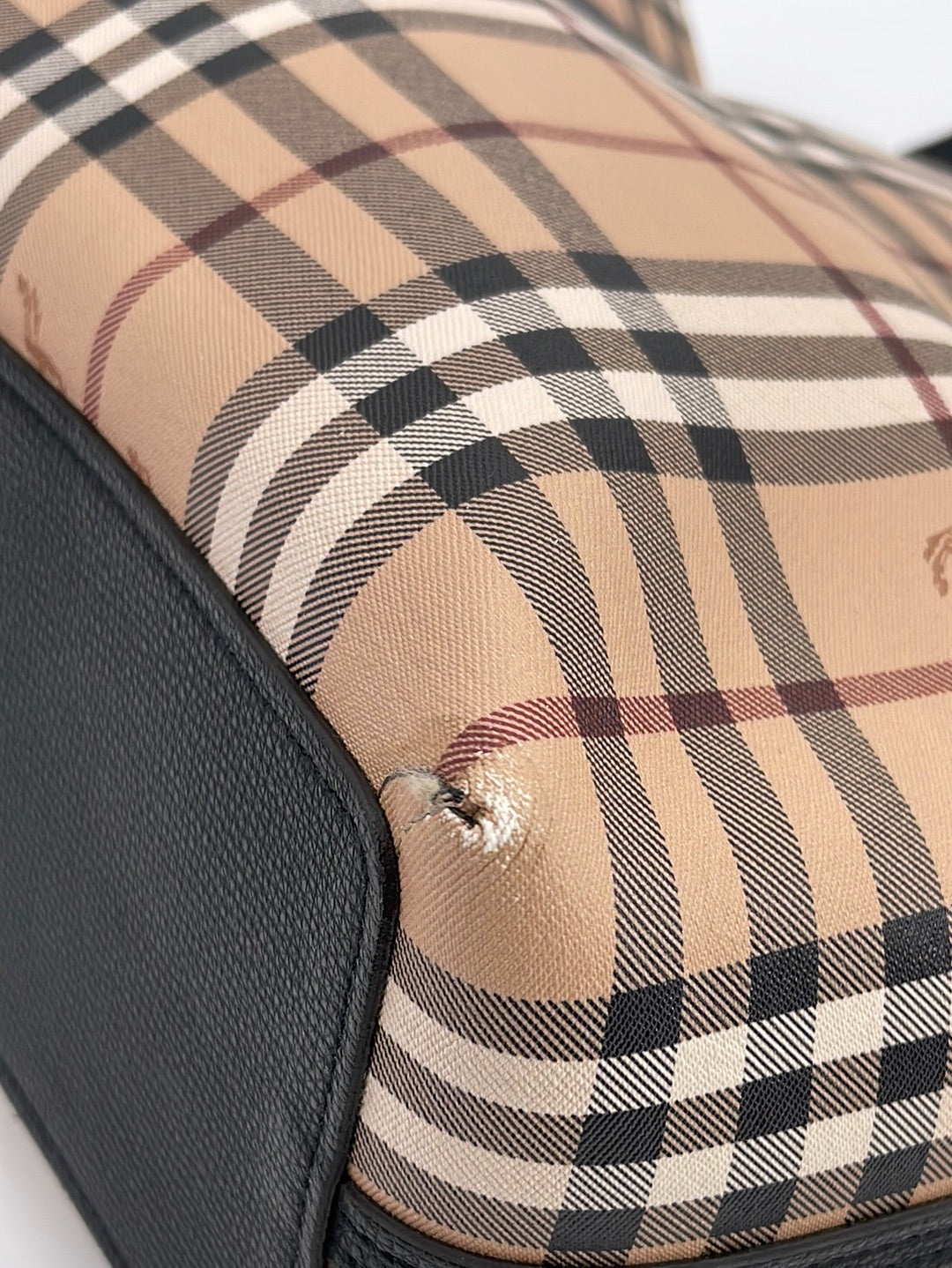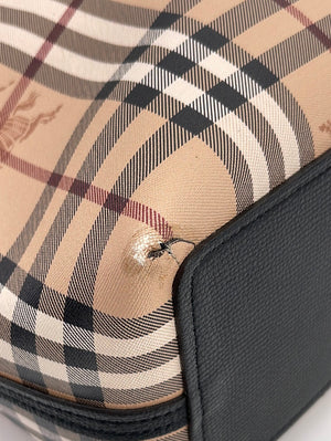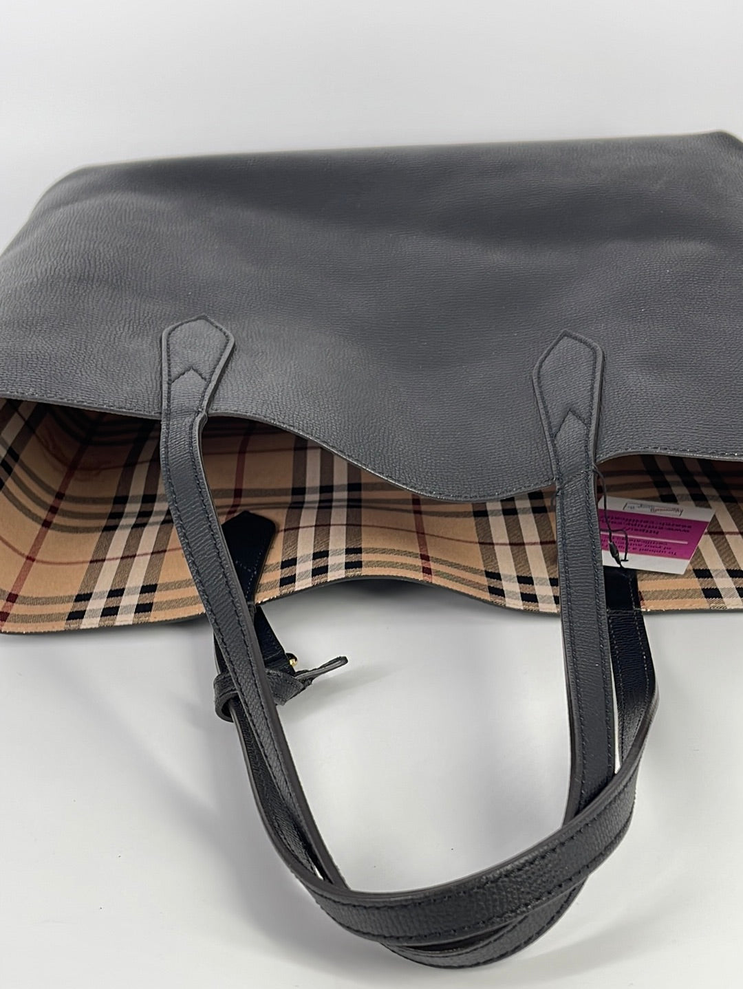 Preloved BURBERRY Haymarket Check Canvas and Black Leather Reversible Tote