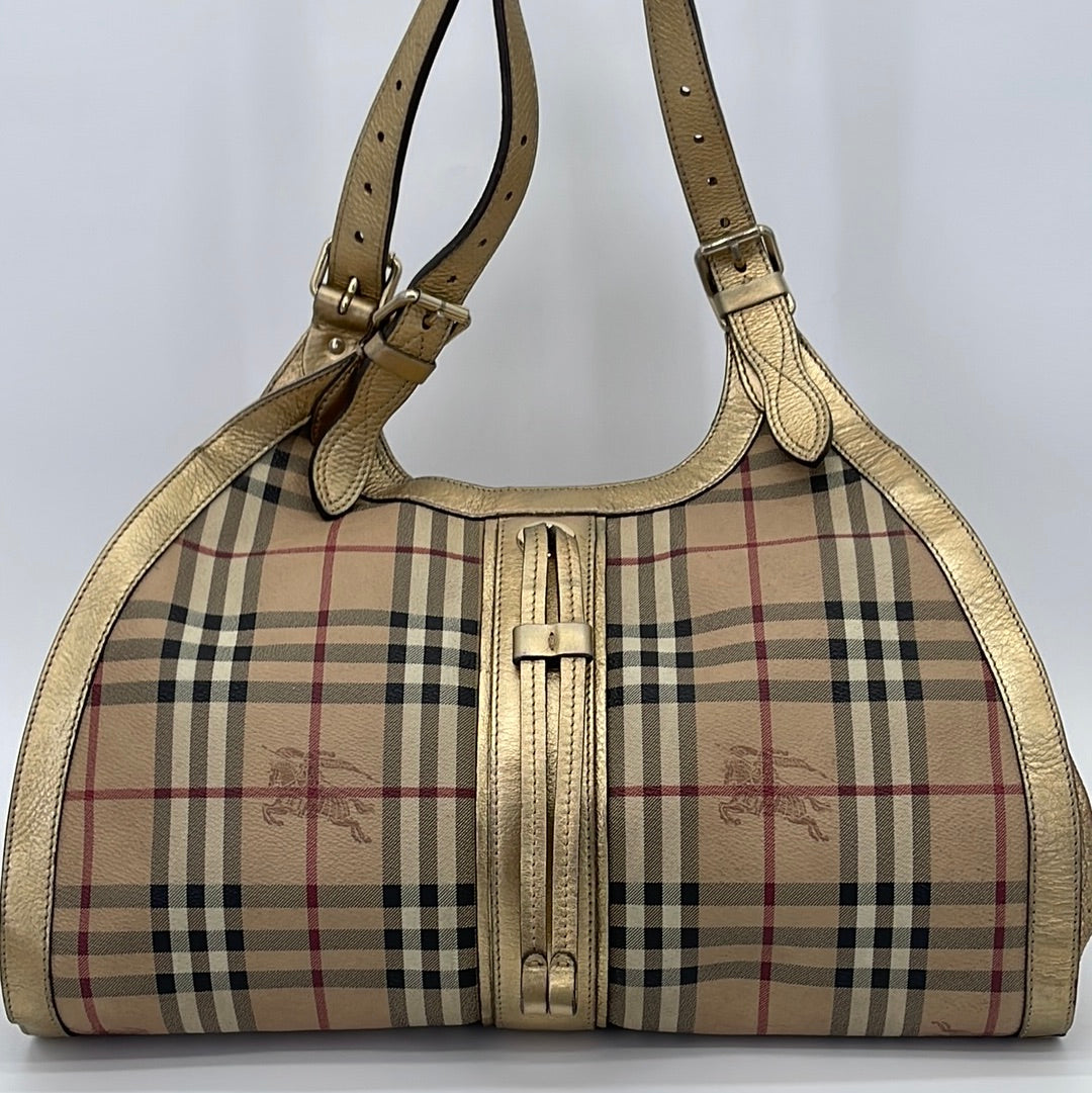 Preloved BURBERRY Haymarket Check Canvas Metallic Leather Shoulder Bag