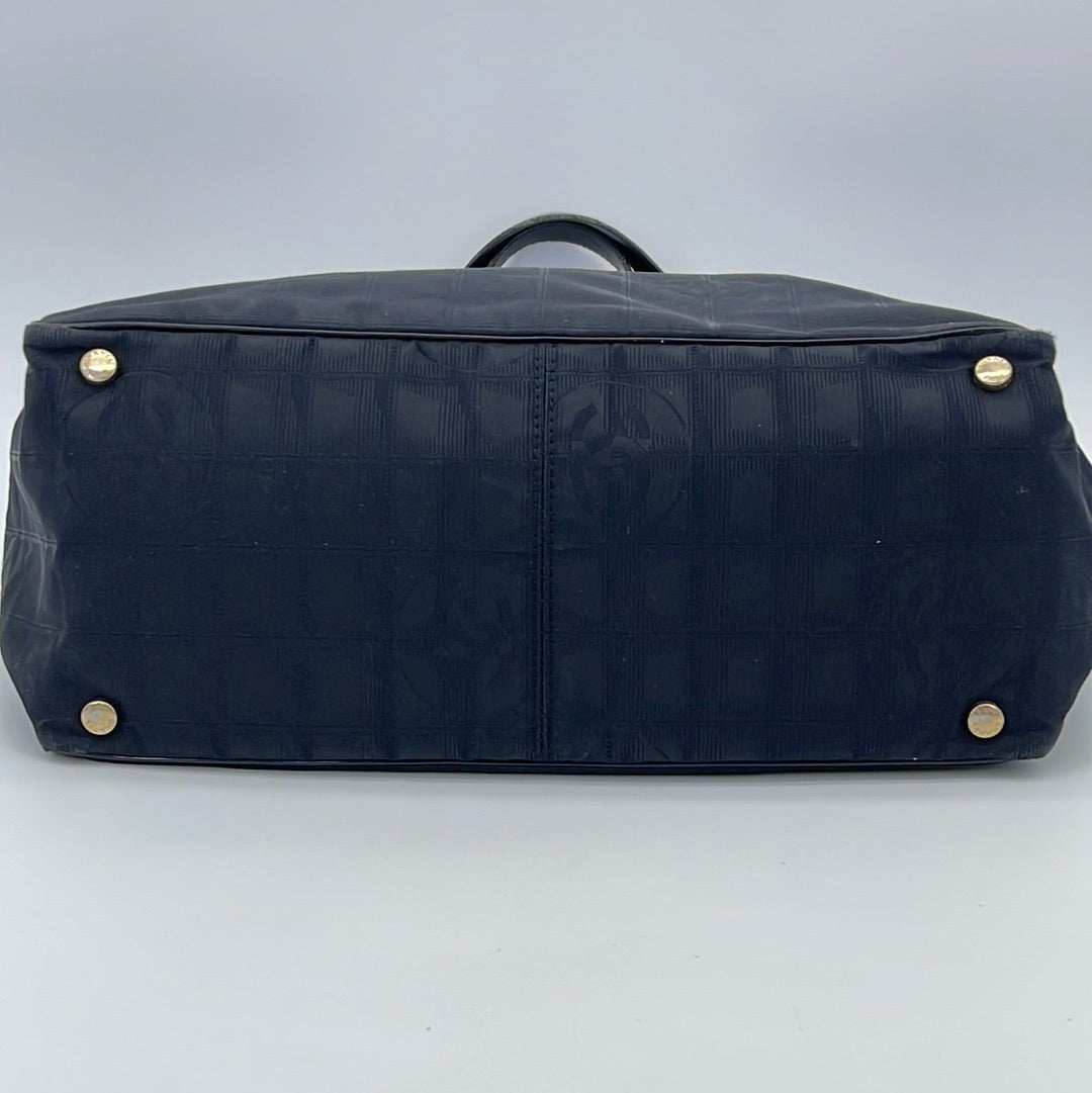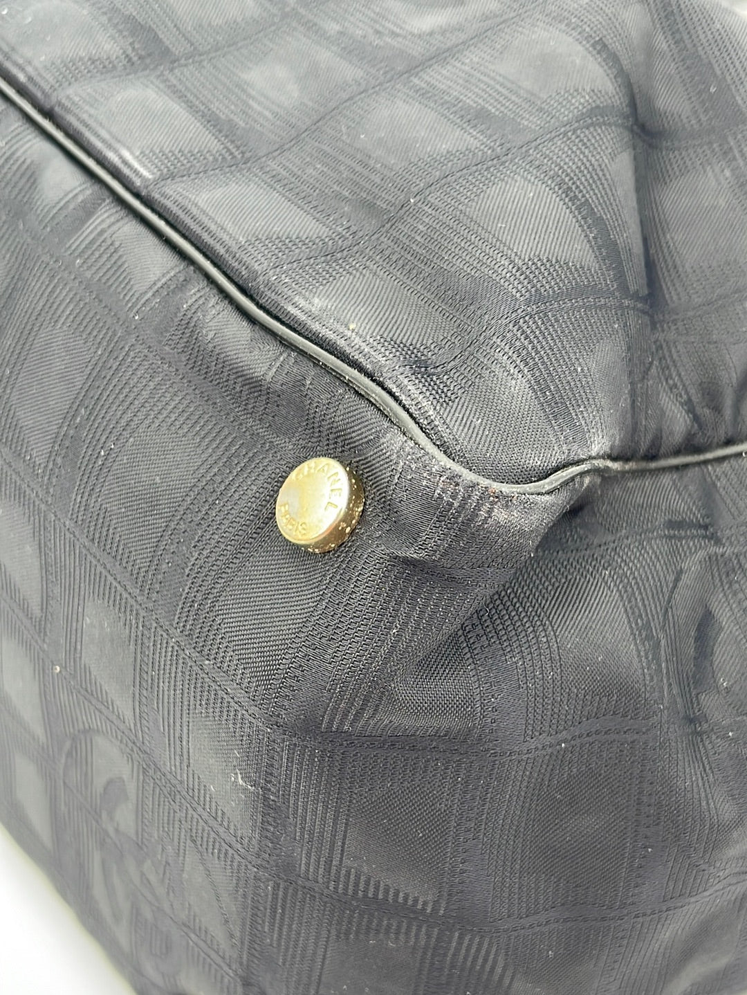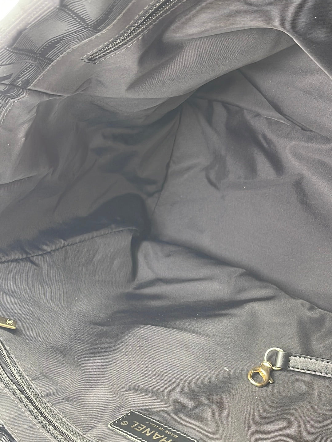 Preloved Chanel Black Canvas and Black Leather Travel Line Tote