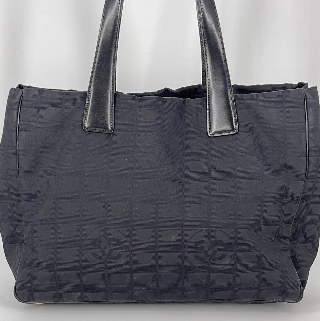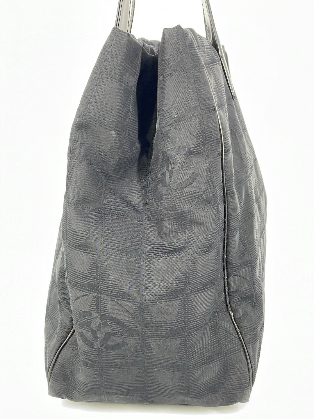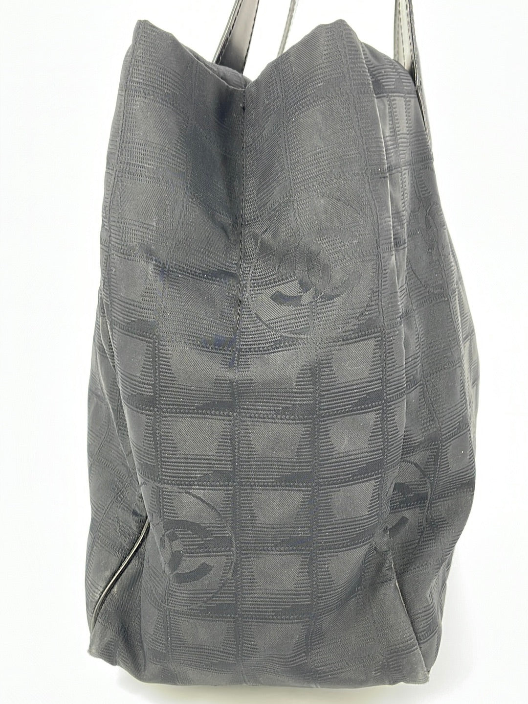 Preloved Chanel Black Canvas and Black Leather Travel Line Tote