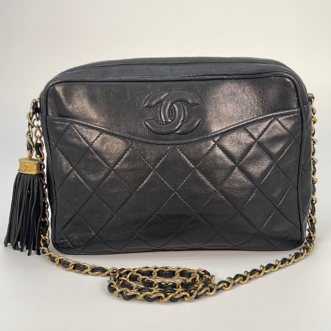 PRELOVED CHANEL Black Quilted Lambskin Tassel Chain Camara Bag