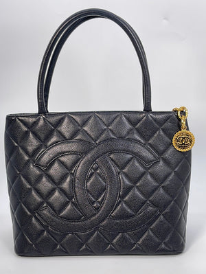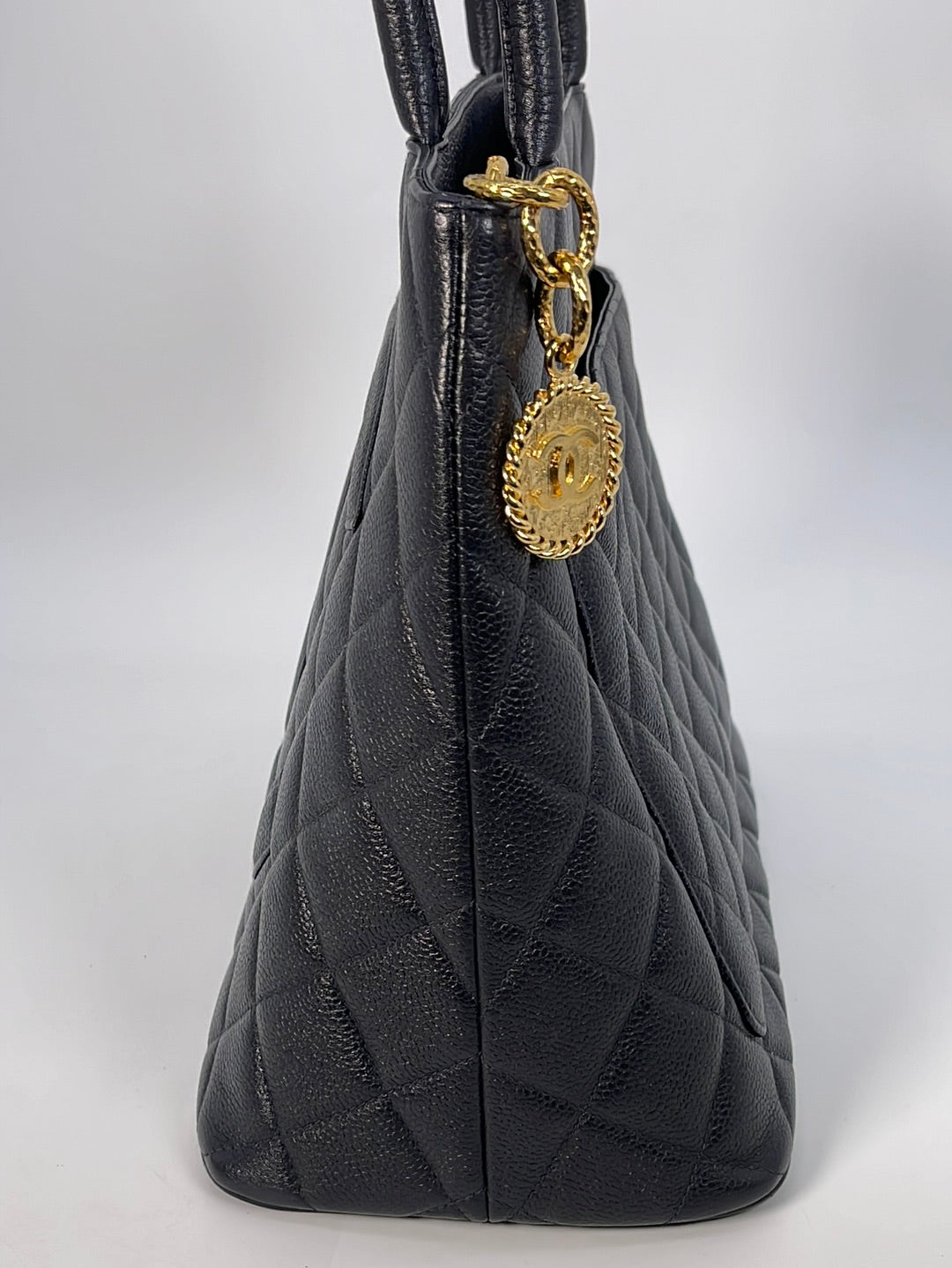 Preloved Chanel Black Caviar Leather Medallion Tote