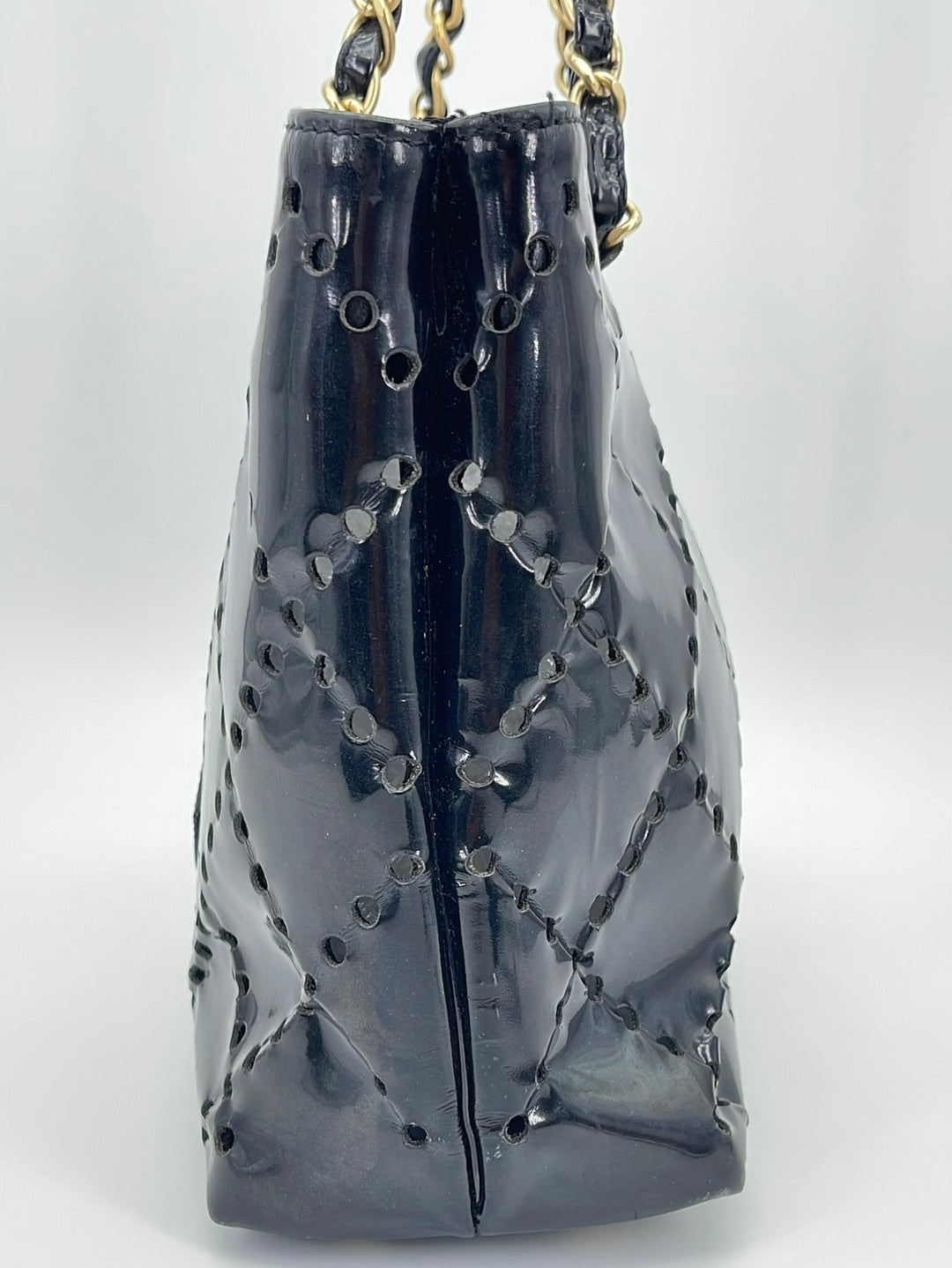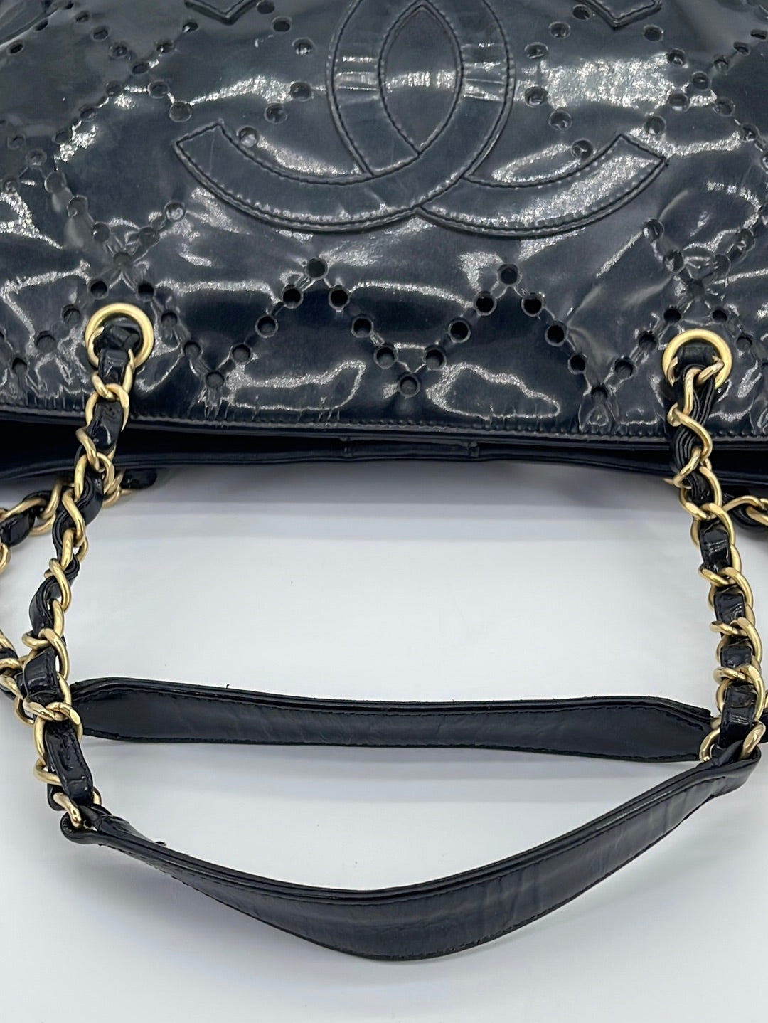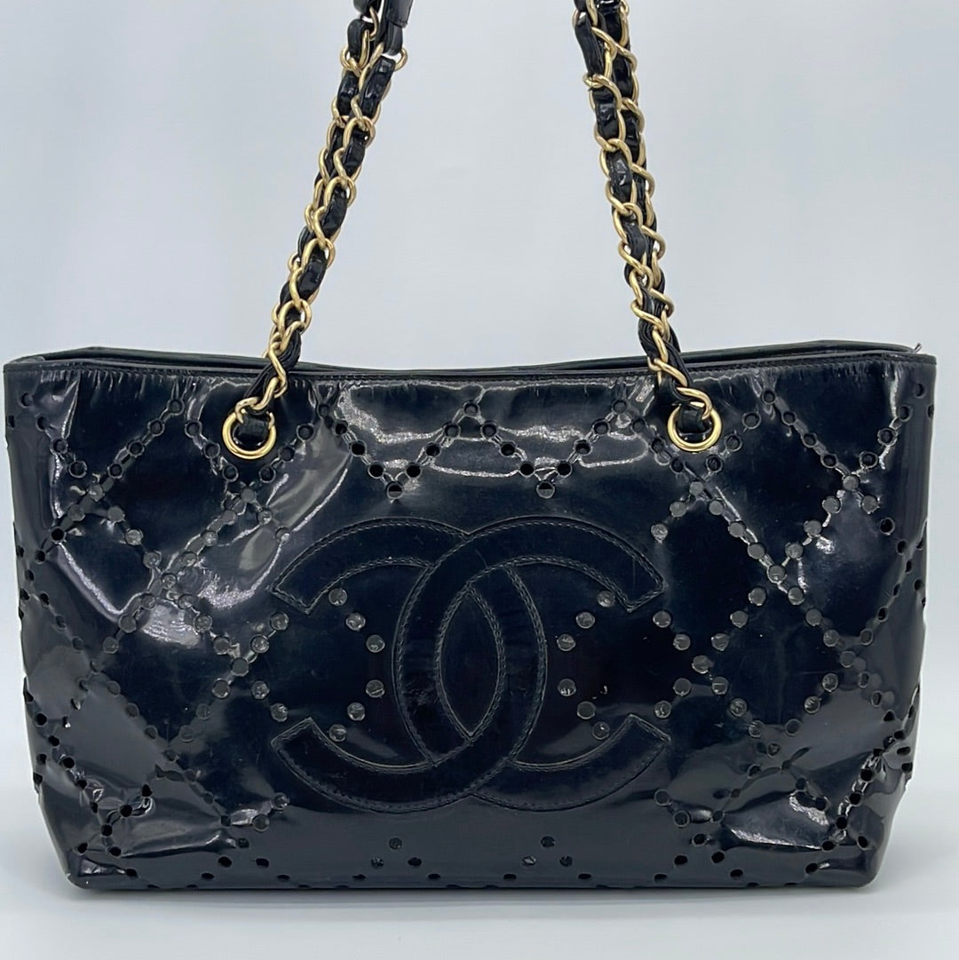 Preloved Chanel CC Black Perforated Shop Patent Leather Shoulder Bag