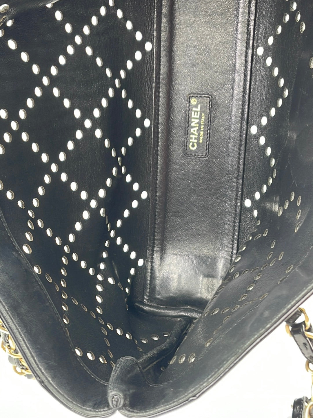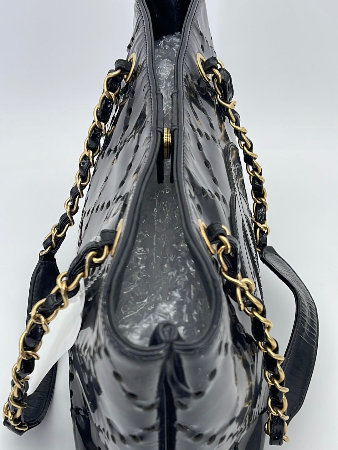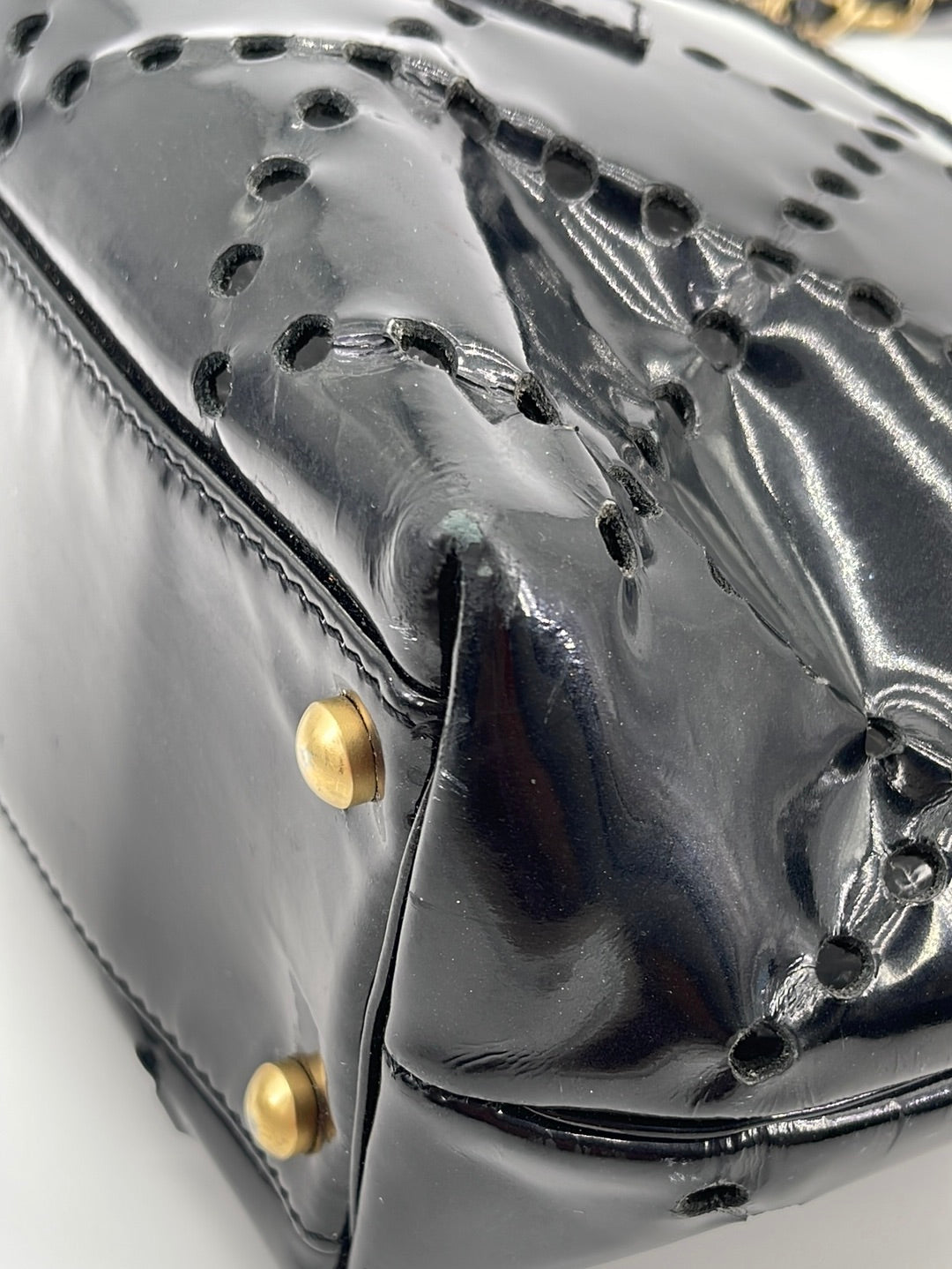 Preloved Chanel CC Black Perforated Shop Patent Leather Shoulder Bag