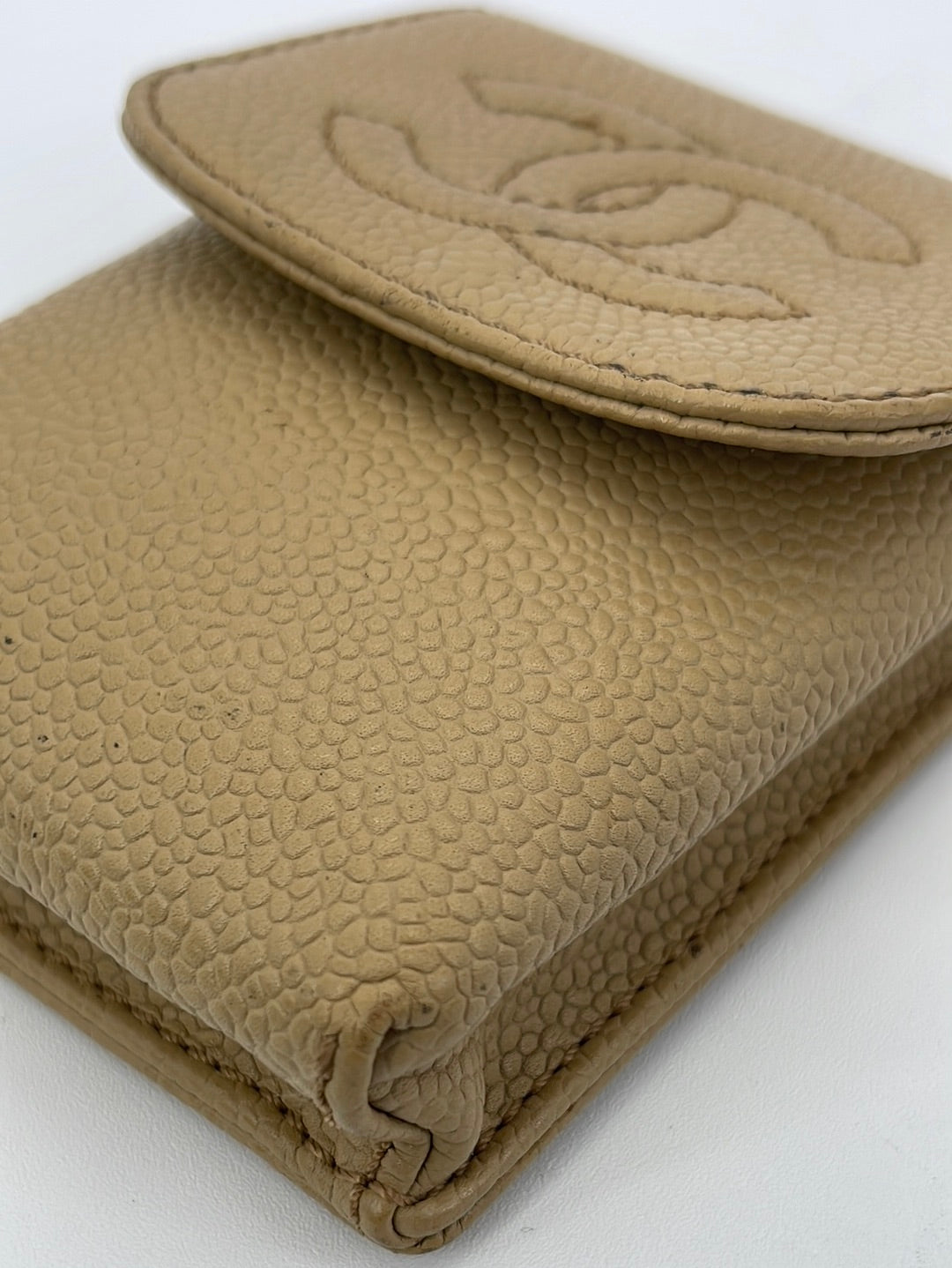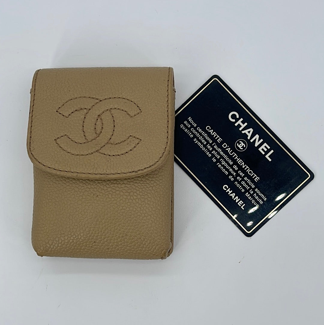 Preloved CHANEL CC Logo Beige Caviar Leather Cigarette Tobacco Case