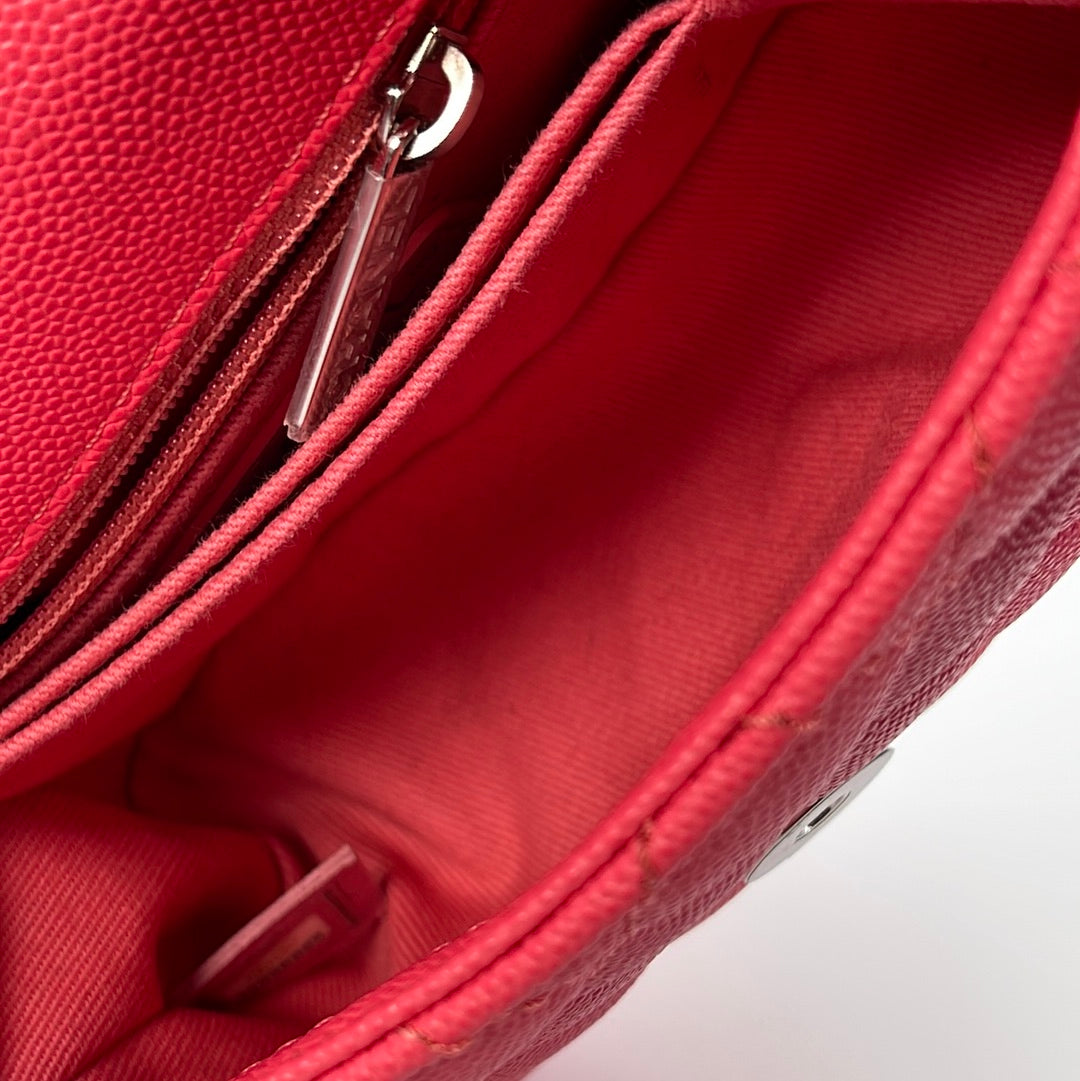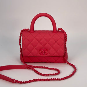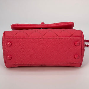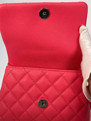 Preloved CHANEL Bubblegum Pink Quilted Caviar Leather Mini Top Handle Bag with Crossbody Chain Strap