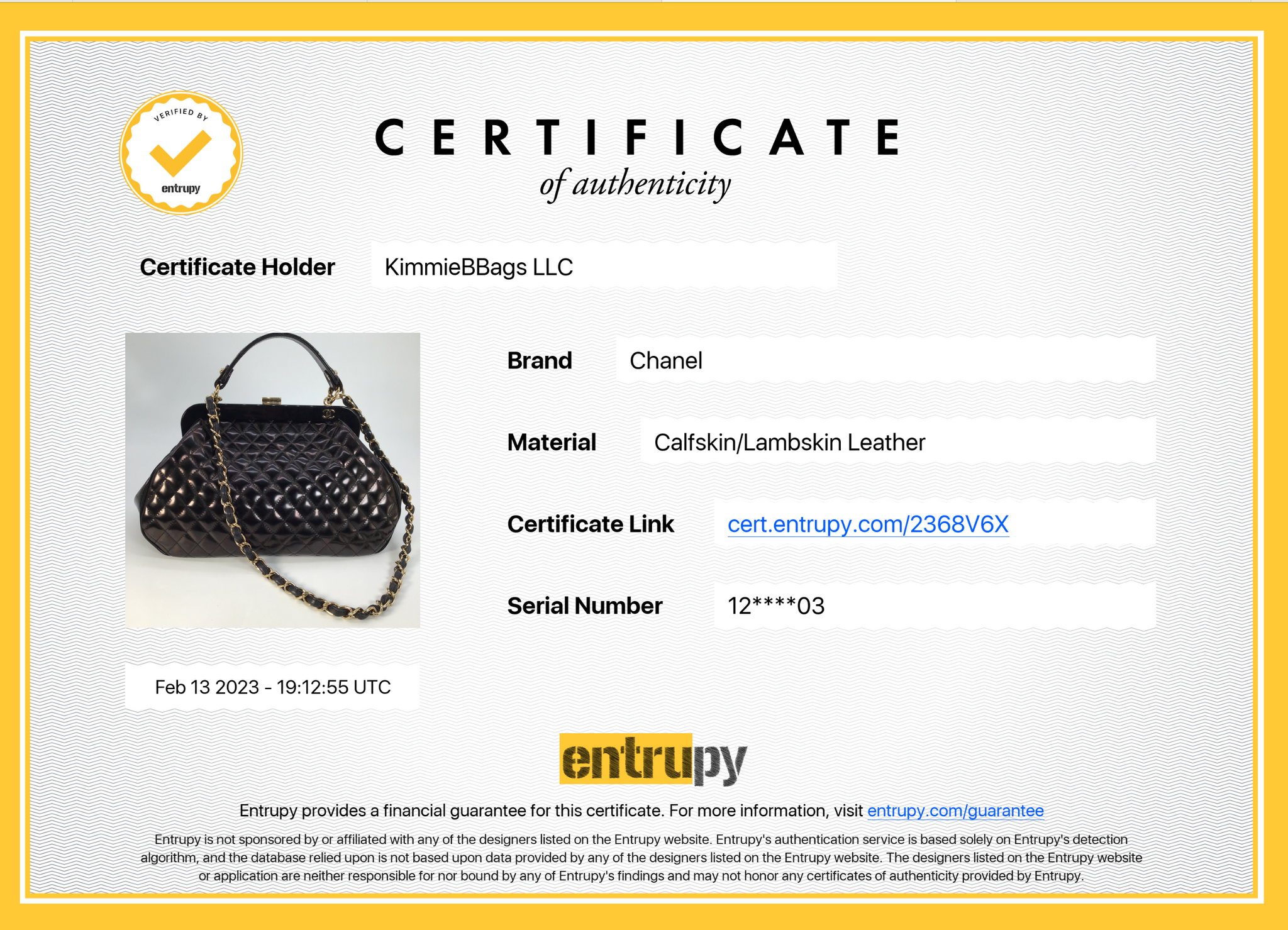 *KimmieBBags LLC is not affiliated with Chanel resold on this site. All bags are on consignment, pre-loved and are in used and/or vintage condition. All bags, wallets, and agendas are guaranteed Authentic by a third party Entrupy. A certificate will accompany each item purchased to verify authenticity.