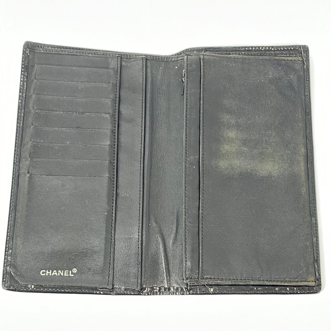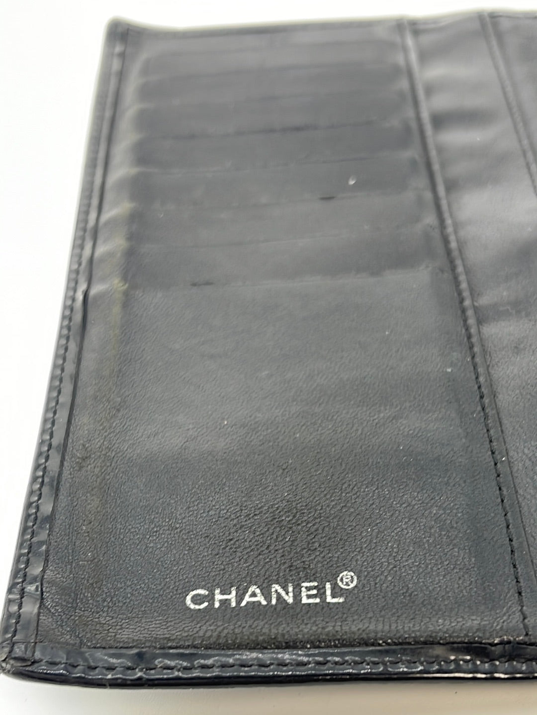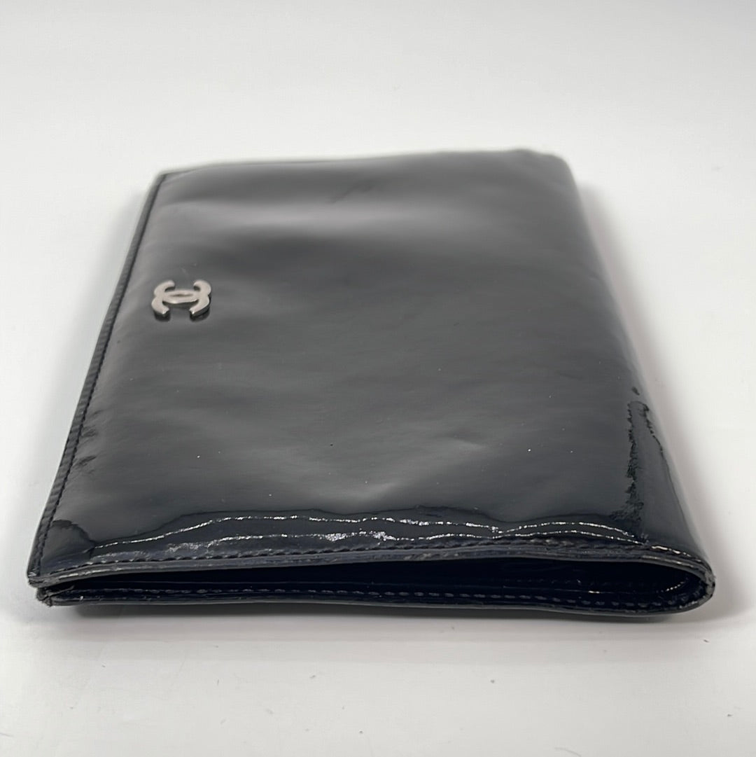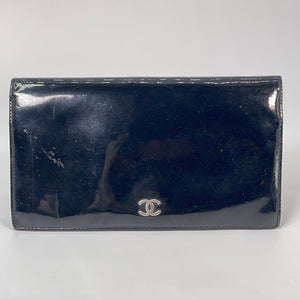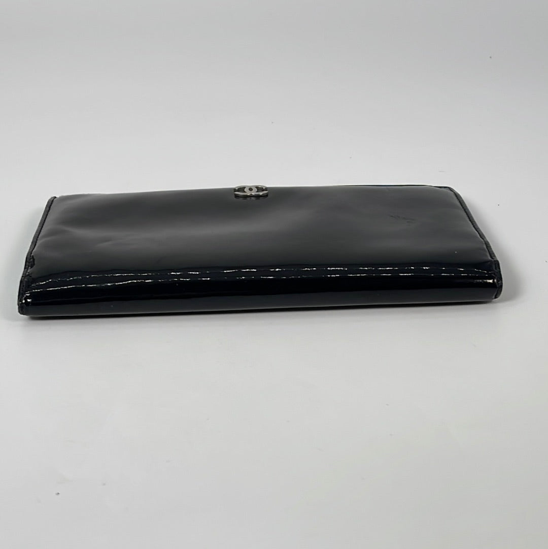 Preloved Chanel Black Patent Bifold Leather Long Wallet