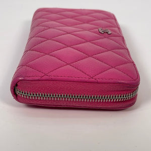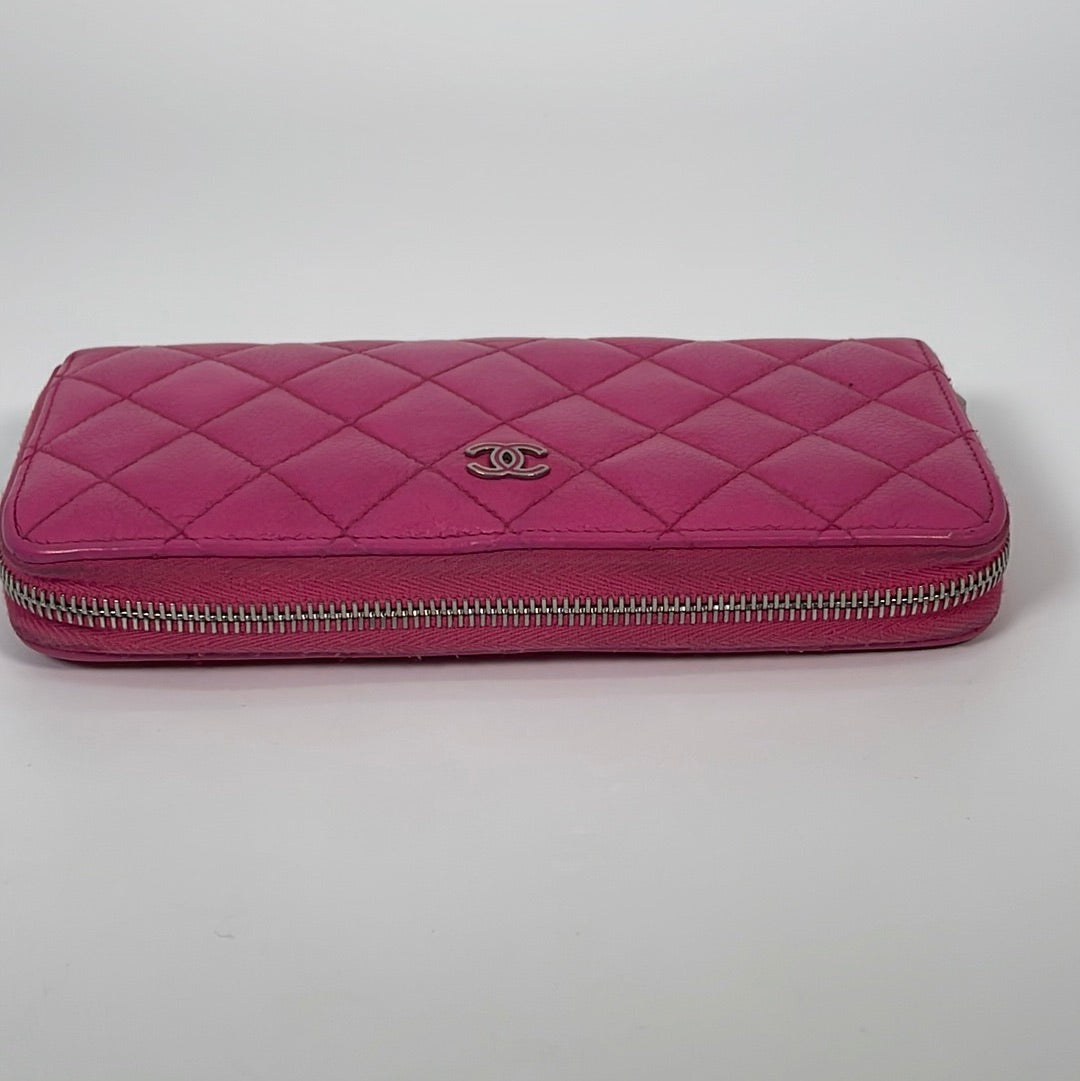 Preloved CHANEL Quilted Pink Leather Long Zippy Wallet