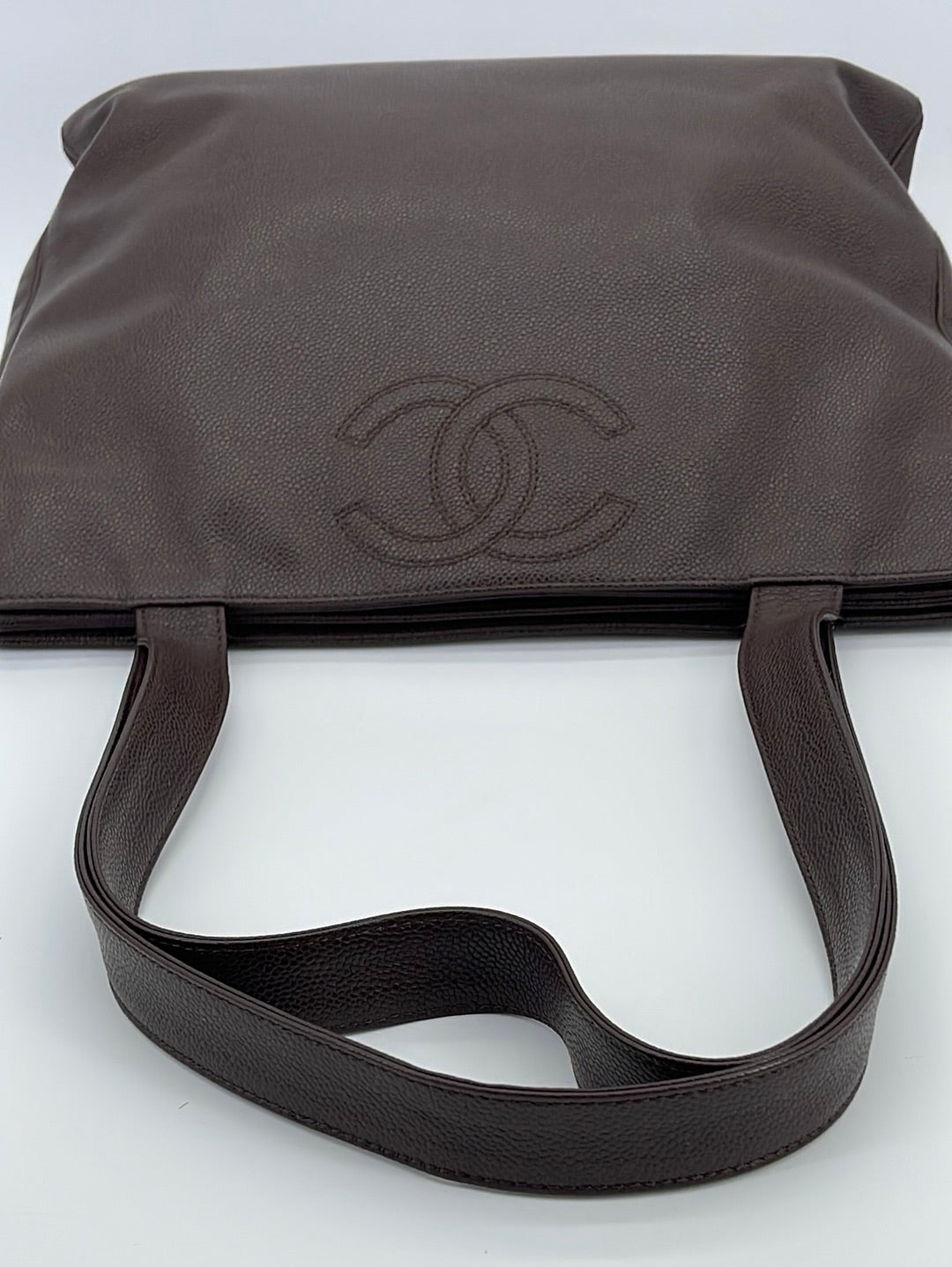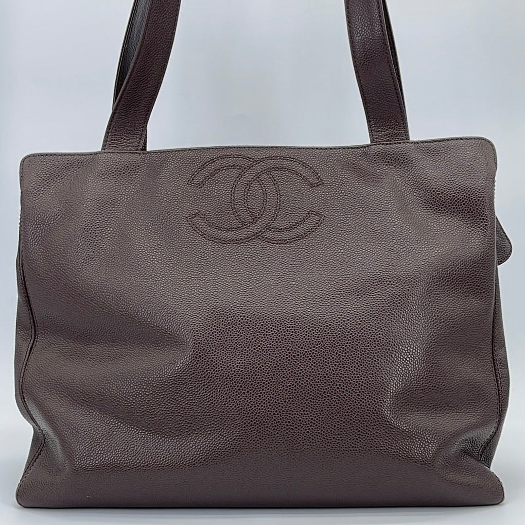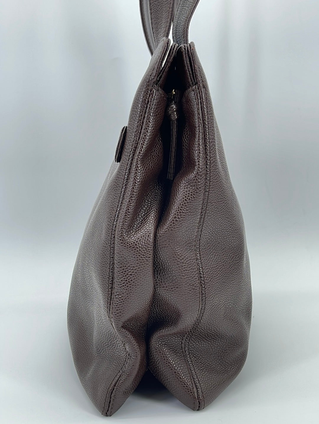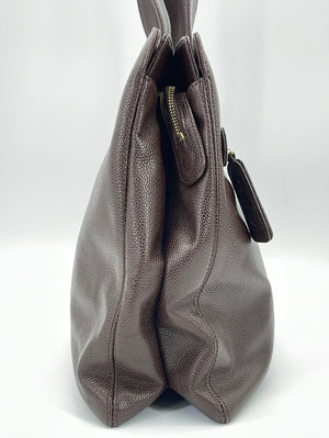 Preloved Chanel Brown Caviar Leather Timeless Quilted Caviar Shopping Tote