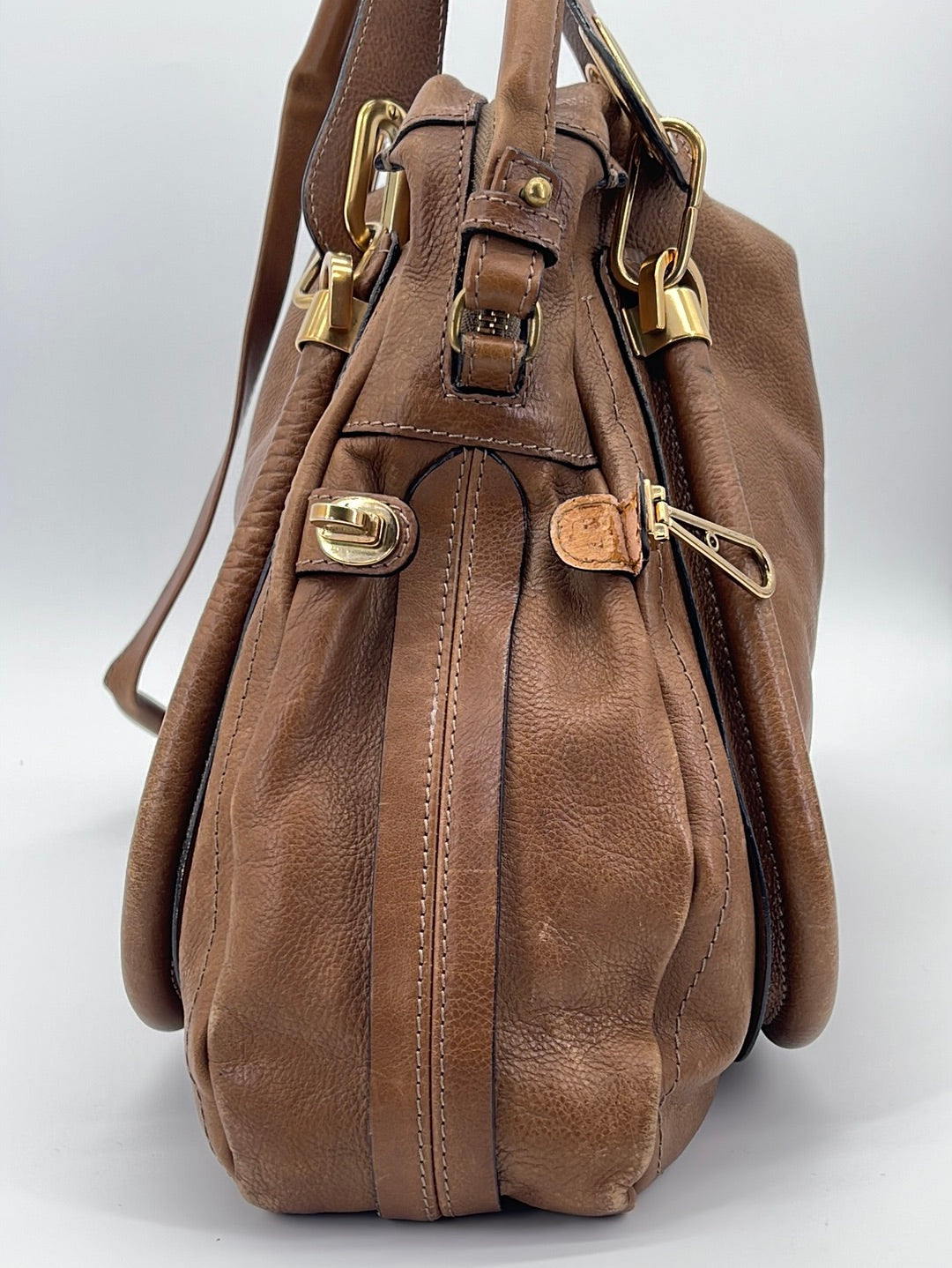 Preloved Chloe Large Brown Leather 2 Way Paraty Shoulder Hand Bag