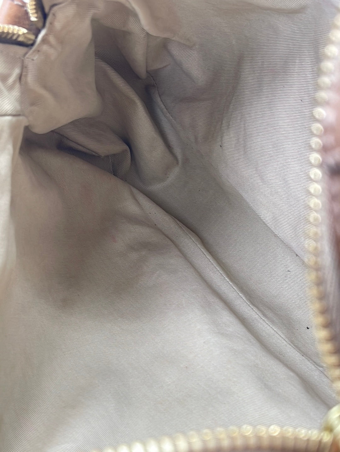 PRELOVED - Fair used condition. Exterior has some rubbing on side and on corners. Leather at base of side hook is separating. Interior has light wear and some pen marks. Strap has some wear. Overall moderate wear. See photos!