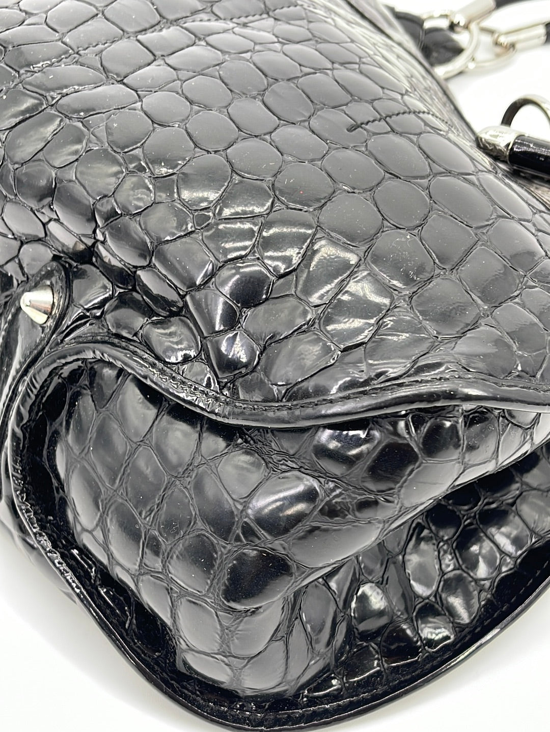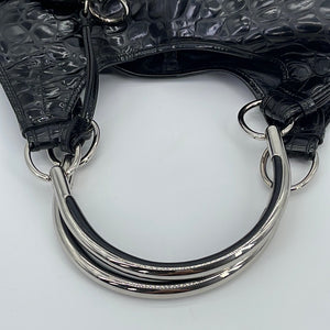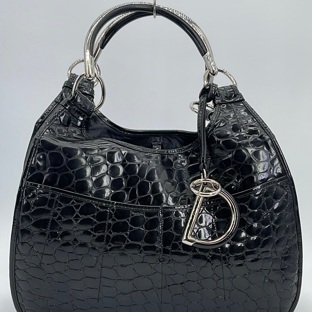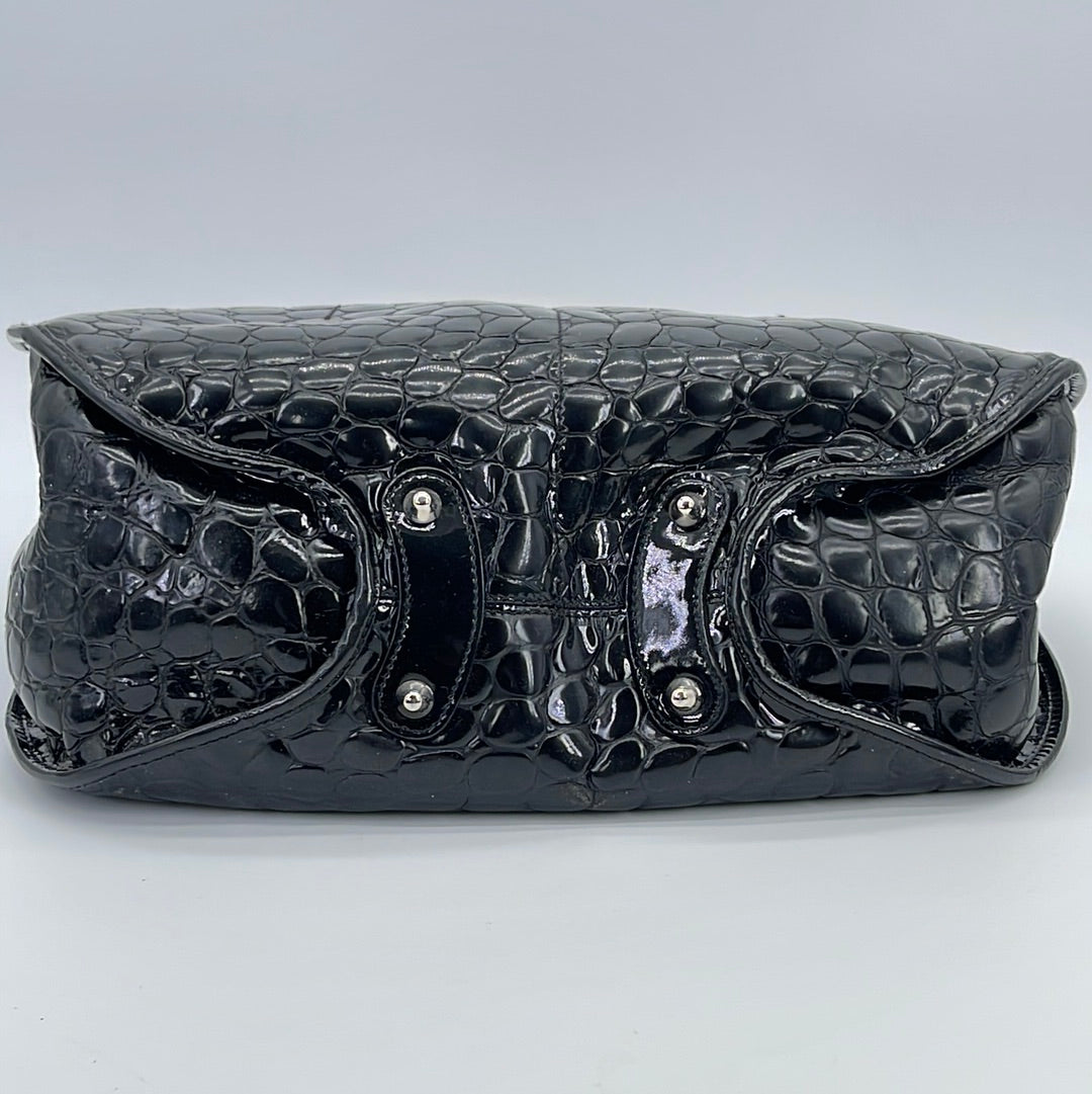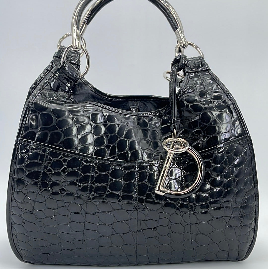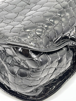 PRELOVED Christian Dior Black Croc Embossed Patent Leather Shoulder Bag