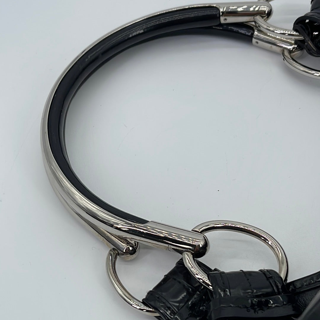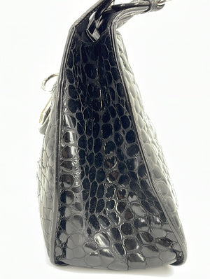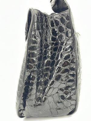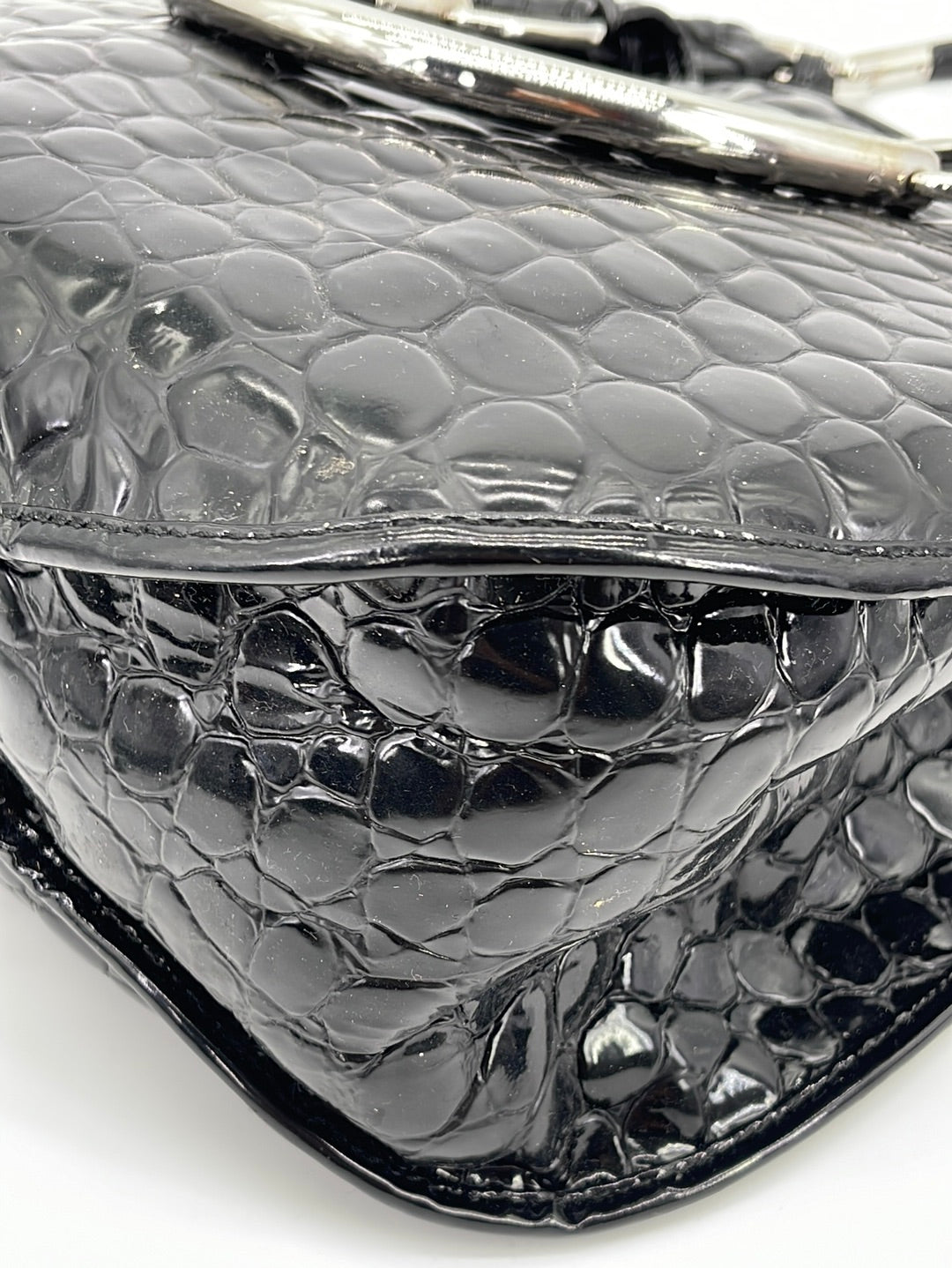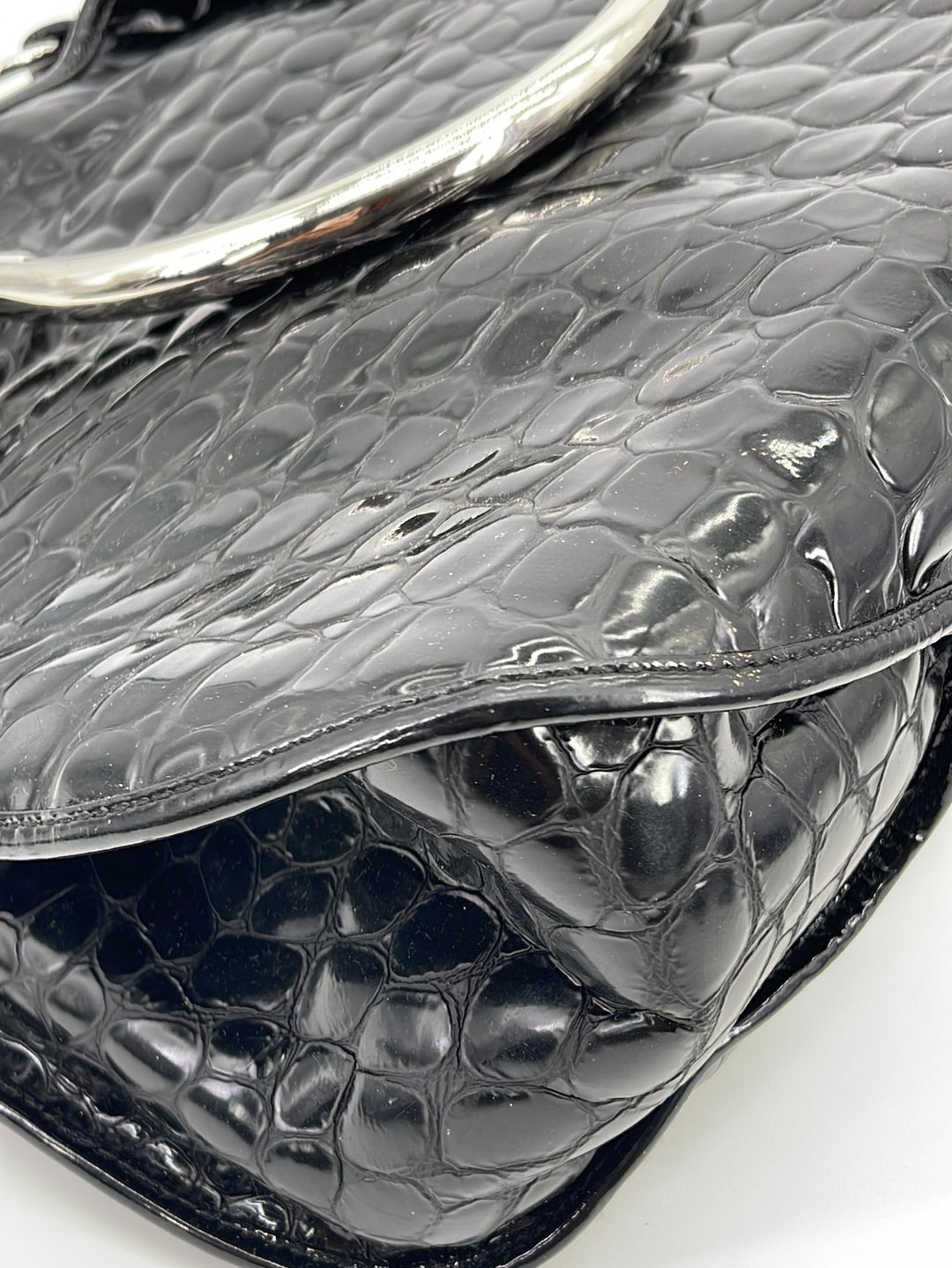 PRELOVED Christian Dior Black Croc Embossed Patent Leather Shoulder Bag